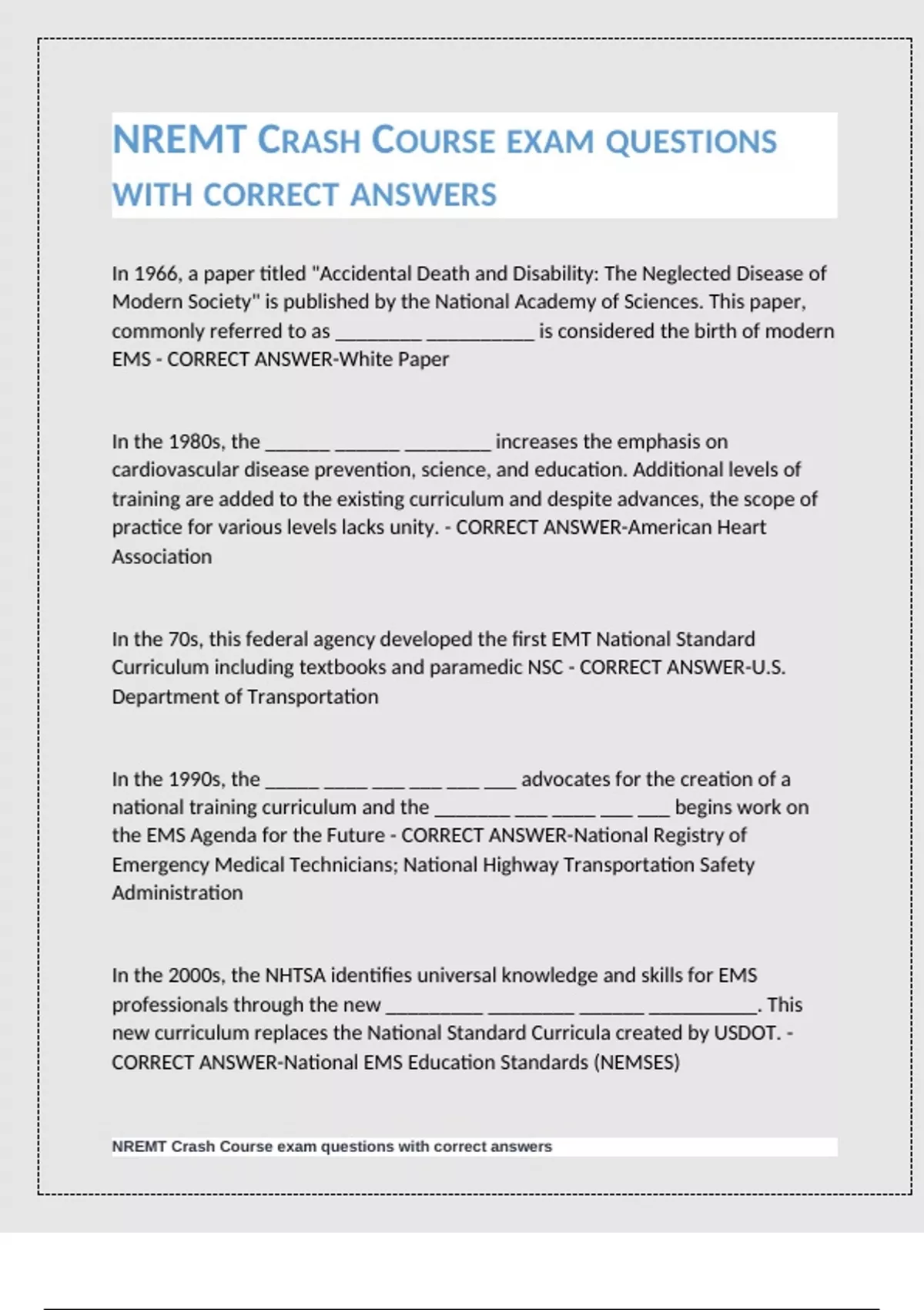 CORRECT ANSWER-National EMS Education Standards (NEMSES)