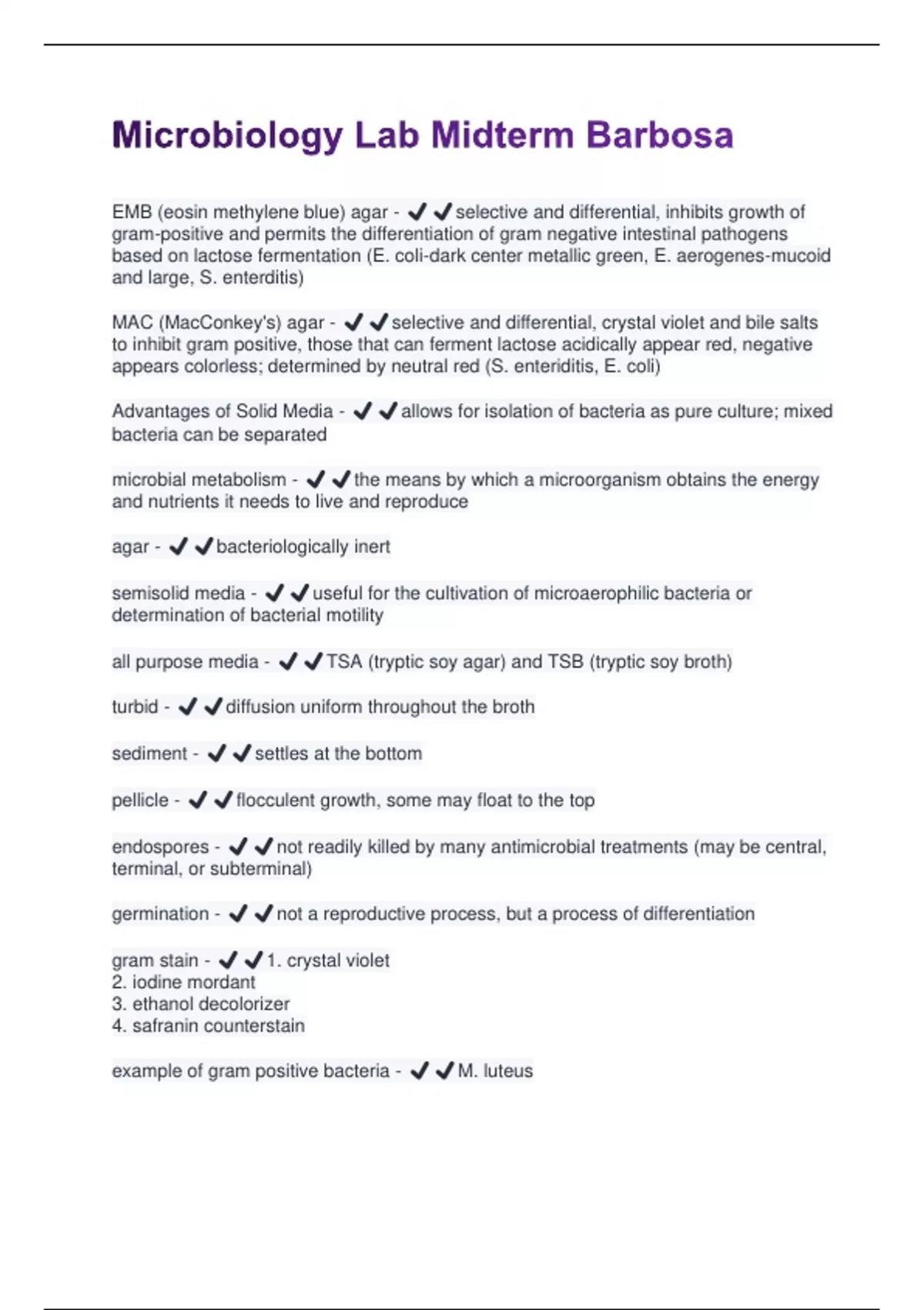 EMB (eosin methylene blue) agar - ✔️✔️selective and differential, inhibits growth of