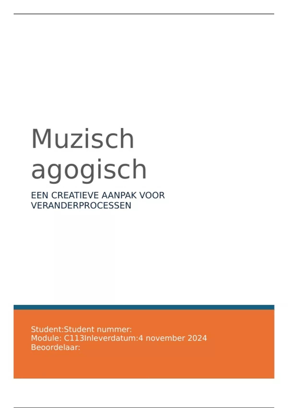 C113, Muzisch agogisch: een creatieve aanpak voor veranderprocessen. Behaald met een 10!