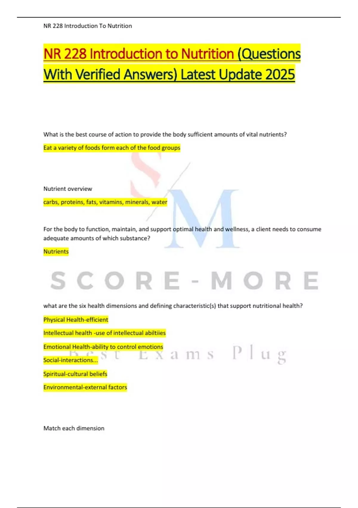 NR 228 Introduction to Nutrition (Questions With Verified Answers) Latest Update 2025