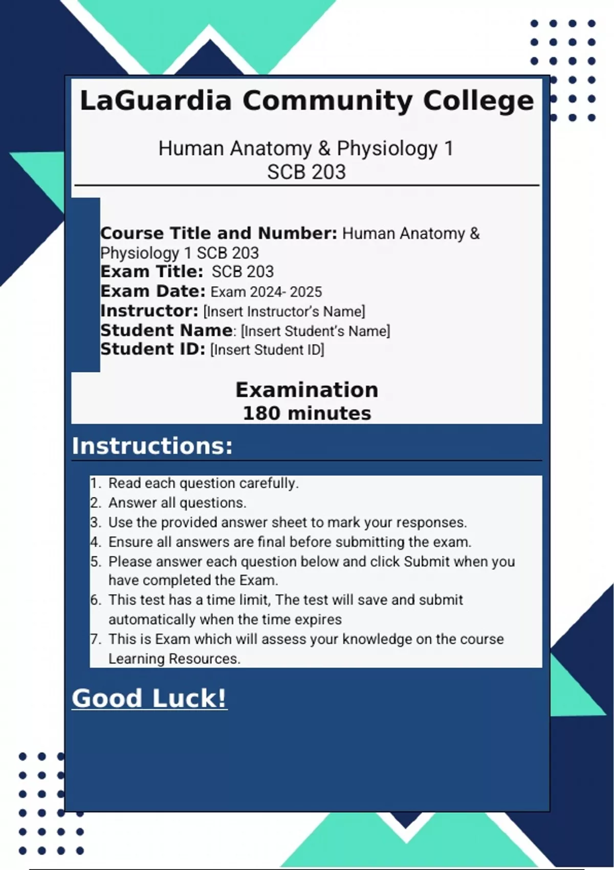Human Anatomy & Physiology 1(SCB 203) Quiz 4 Review Questions with Verified Solutions | 100% Pass Guaranteed | Graded A+ |