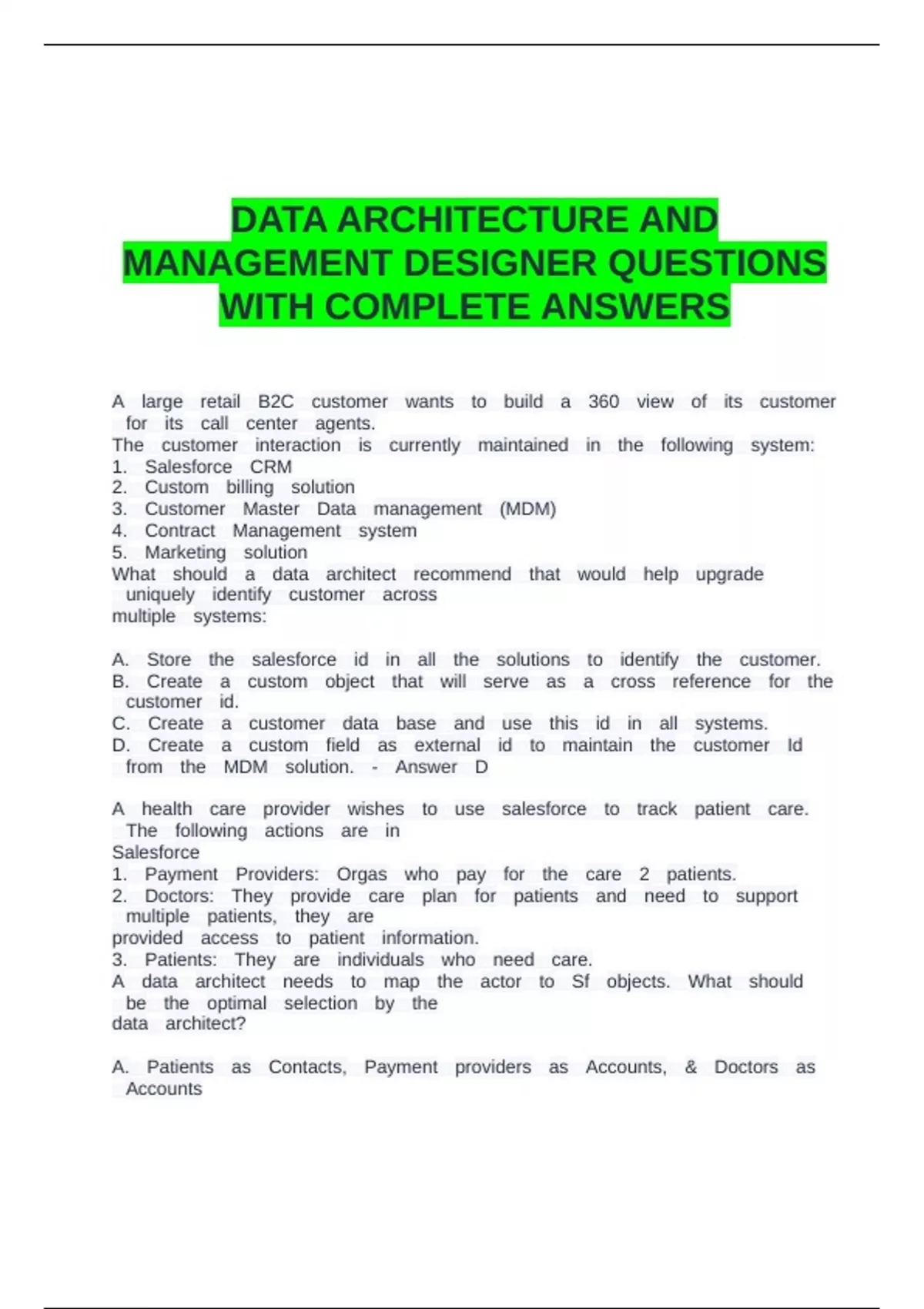 delete ddfrom ddSalesforce. dd- ddAnswer ddC,D