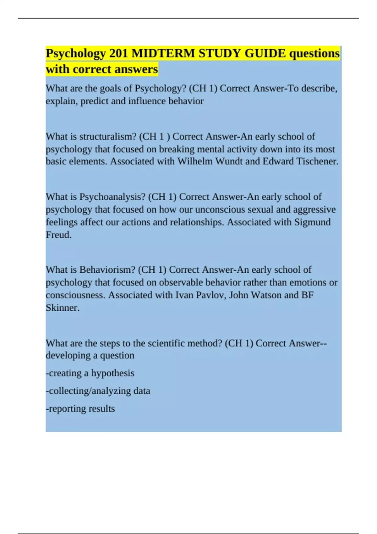 What is Psychoanalysis? (CH 1) Correct Answer-An early school of