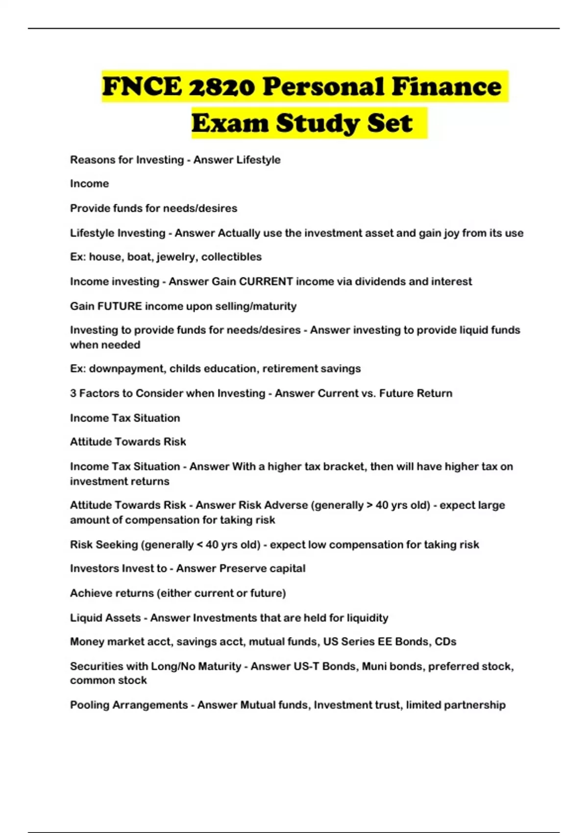 Investing to provide funds for needs/desires - Answer investing to provide liquid funds