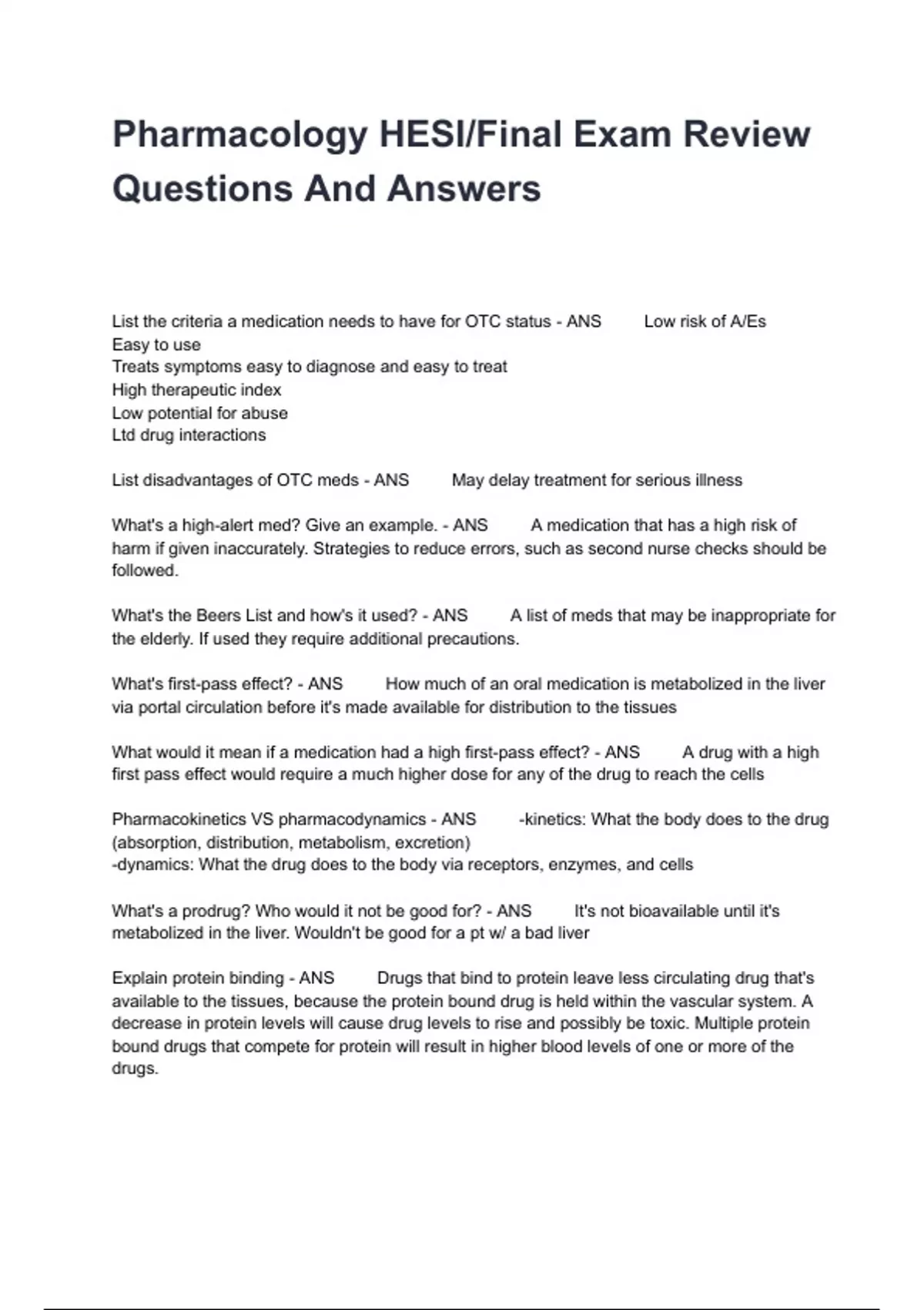 Explain protein binding - ANS Drugs that bind to protein leave less circulating drug that's