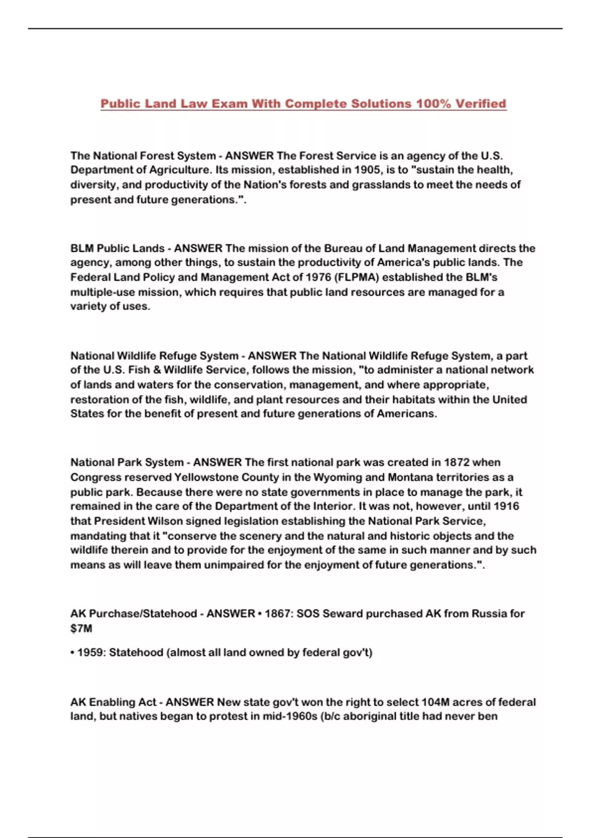 Public Land Law Exam With Complete Solutions 100% Verified