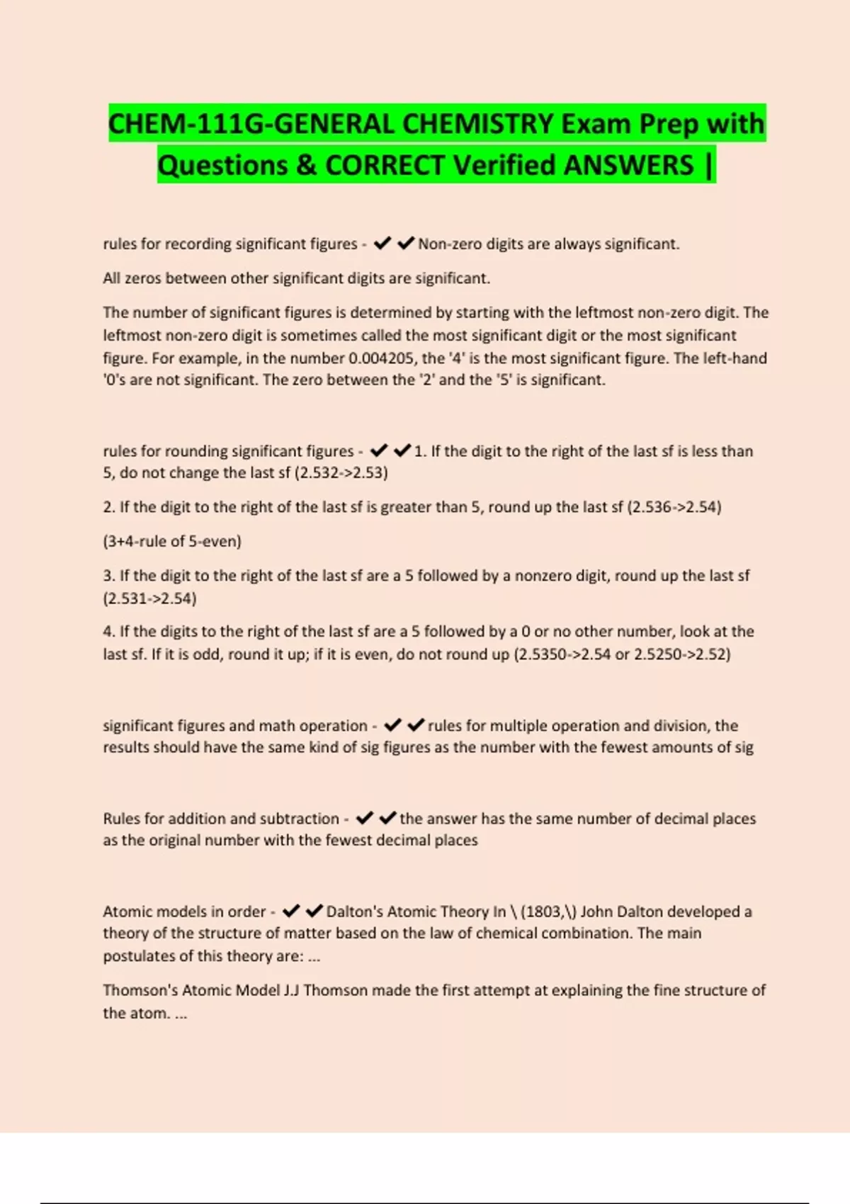 CHEM-111G-GENERAL CHEMISTRY Exam Prep with