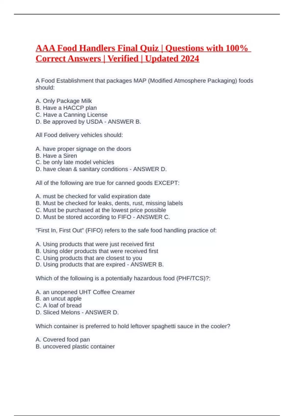 Which of the following is a potentially hazardous food (PHF/TCS)?: