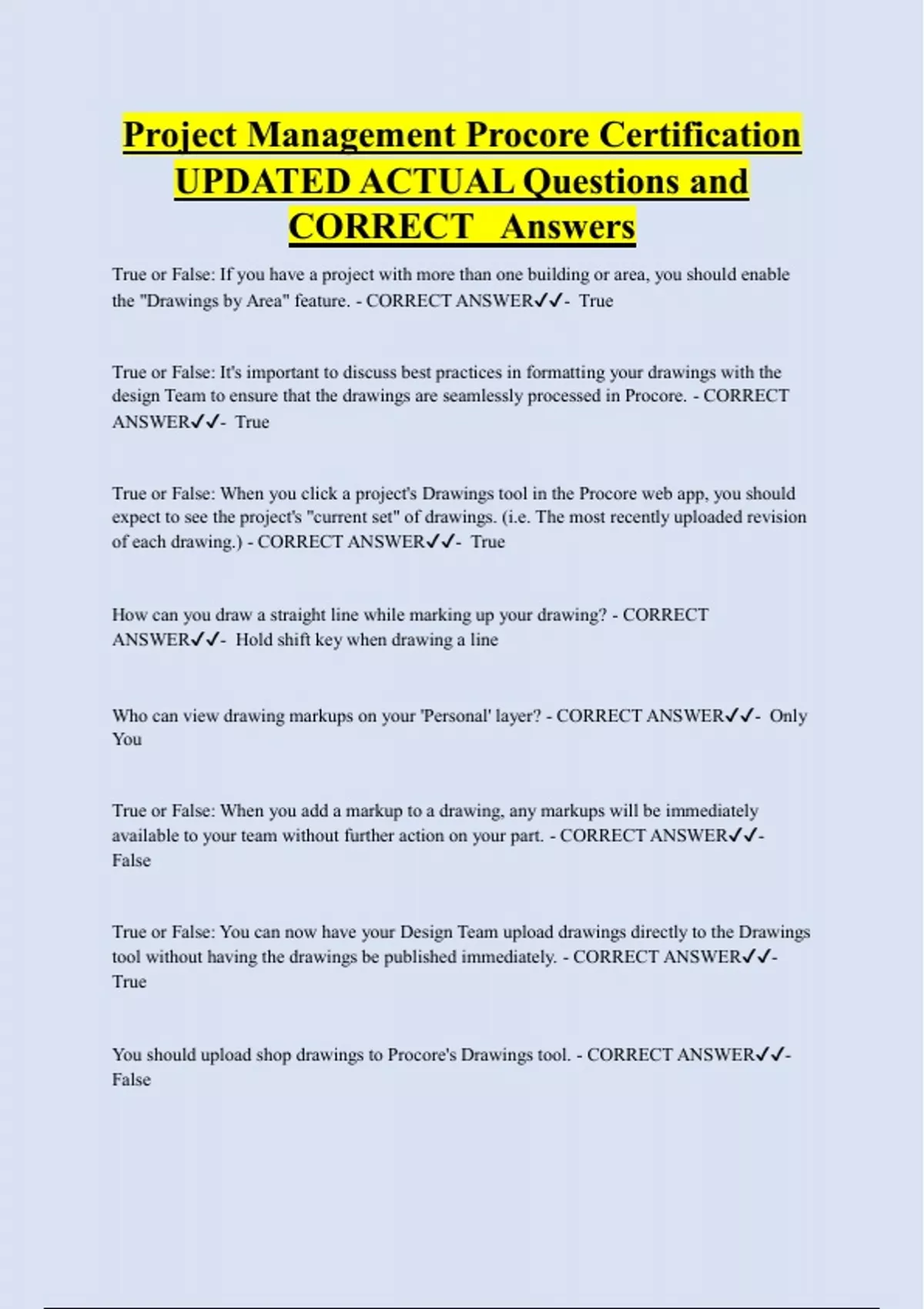 version from Procore. - CORRECT ANSWER✔✔- False