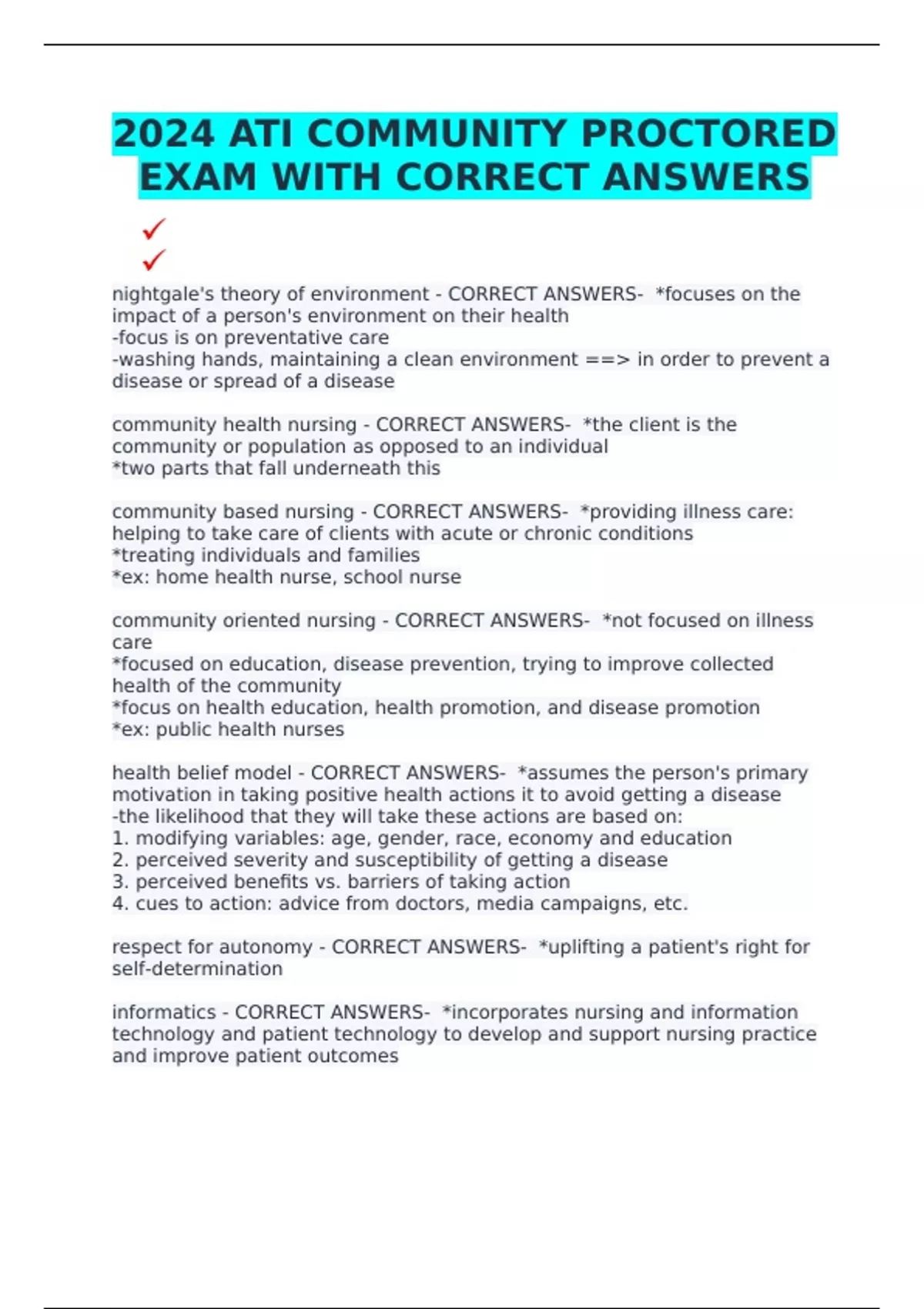 community oriented nursing - CORRECT ANSWERS- *not focused on illness