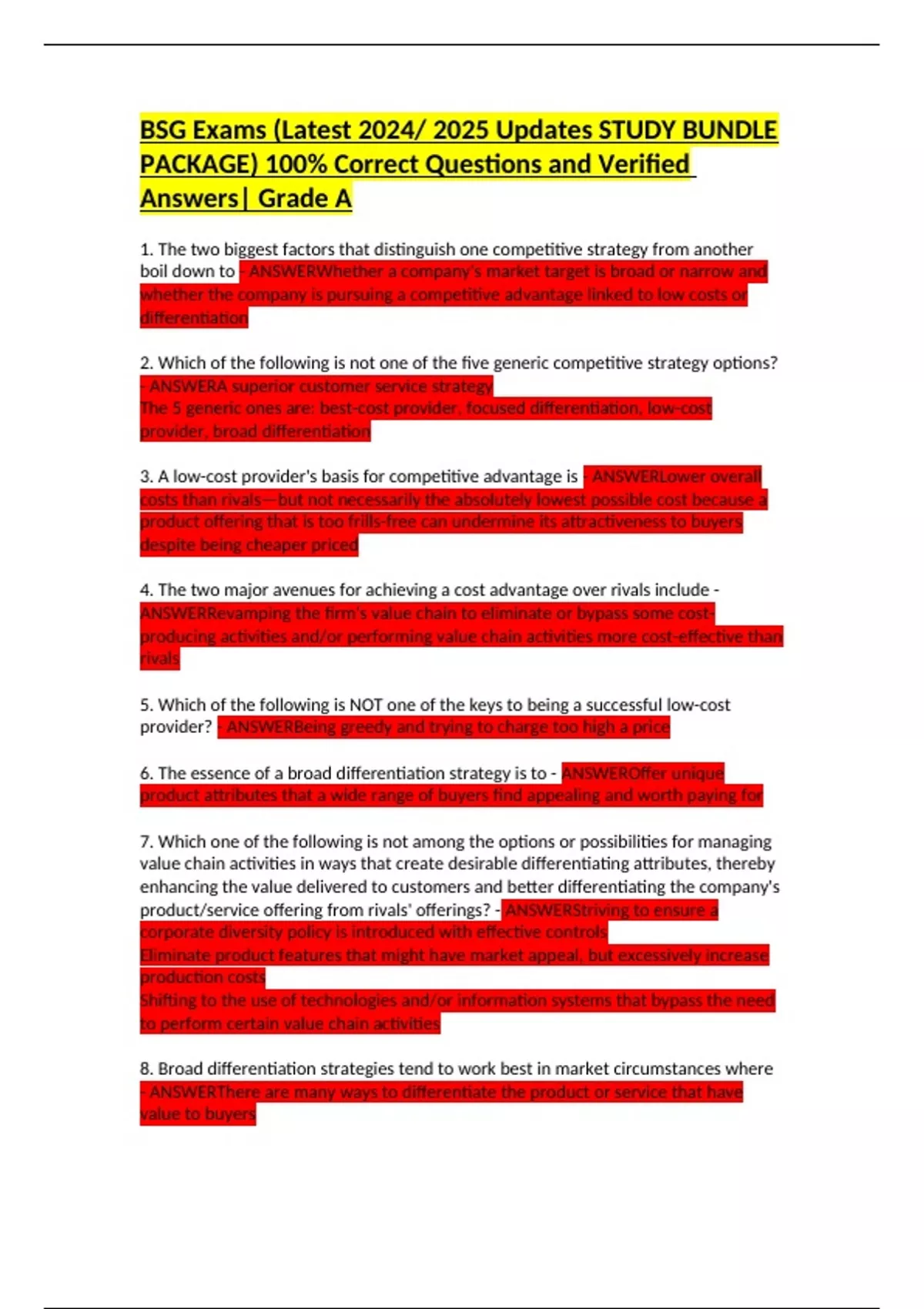 3. A low-cost provider's basis for competitive advantage is - ANSWERLower overall