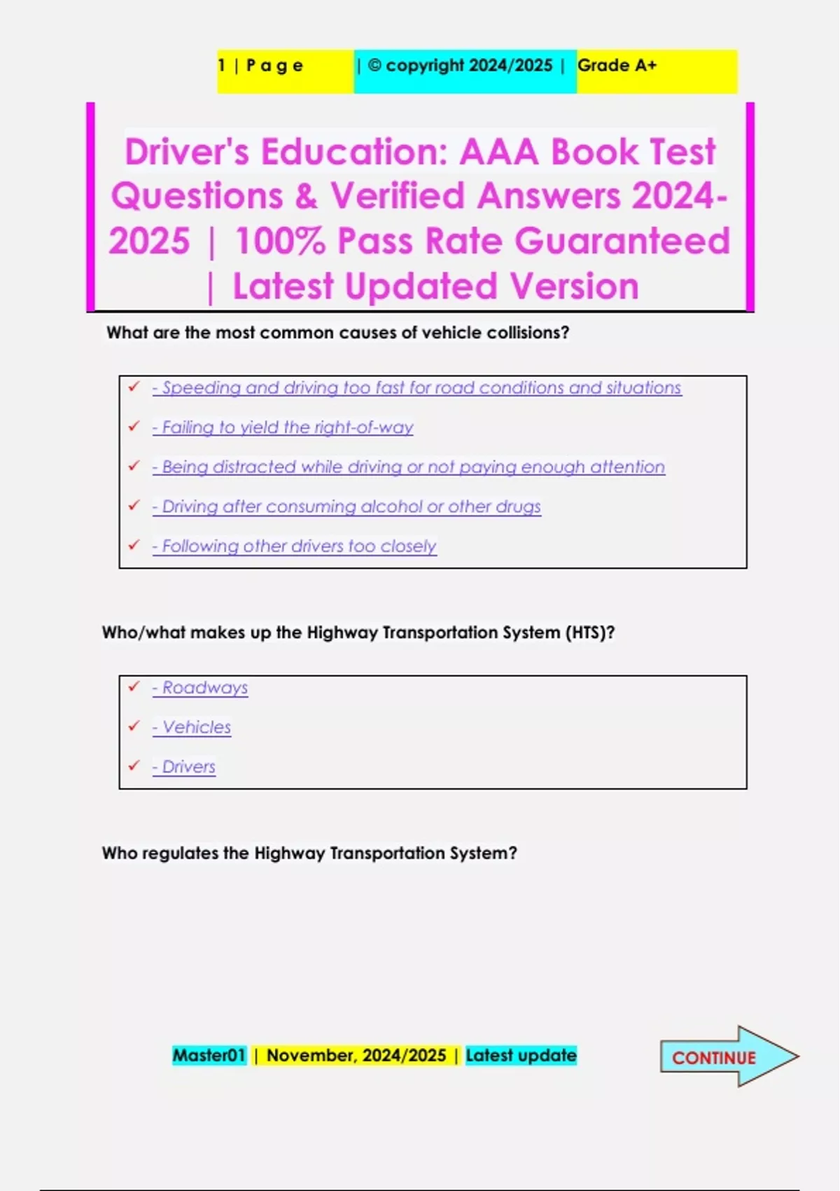 Driver's Education: AAA Book Test Questions & Verified Answers 2024- 2025 | 100% Pass Rate Guaranteed | Latest Updated Version