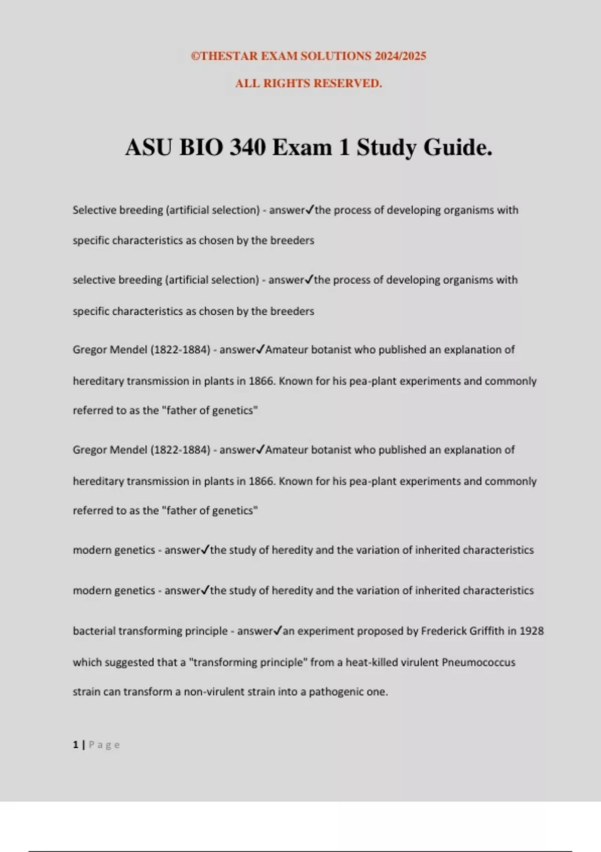 ASU BIO 340 Exam 1 Study Guide.