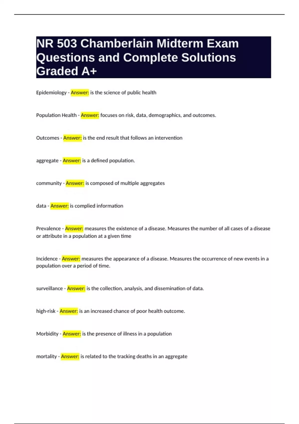 Epidemiology - Answer: is the science of public health