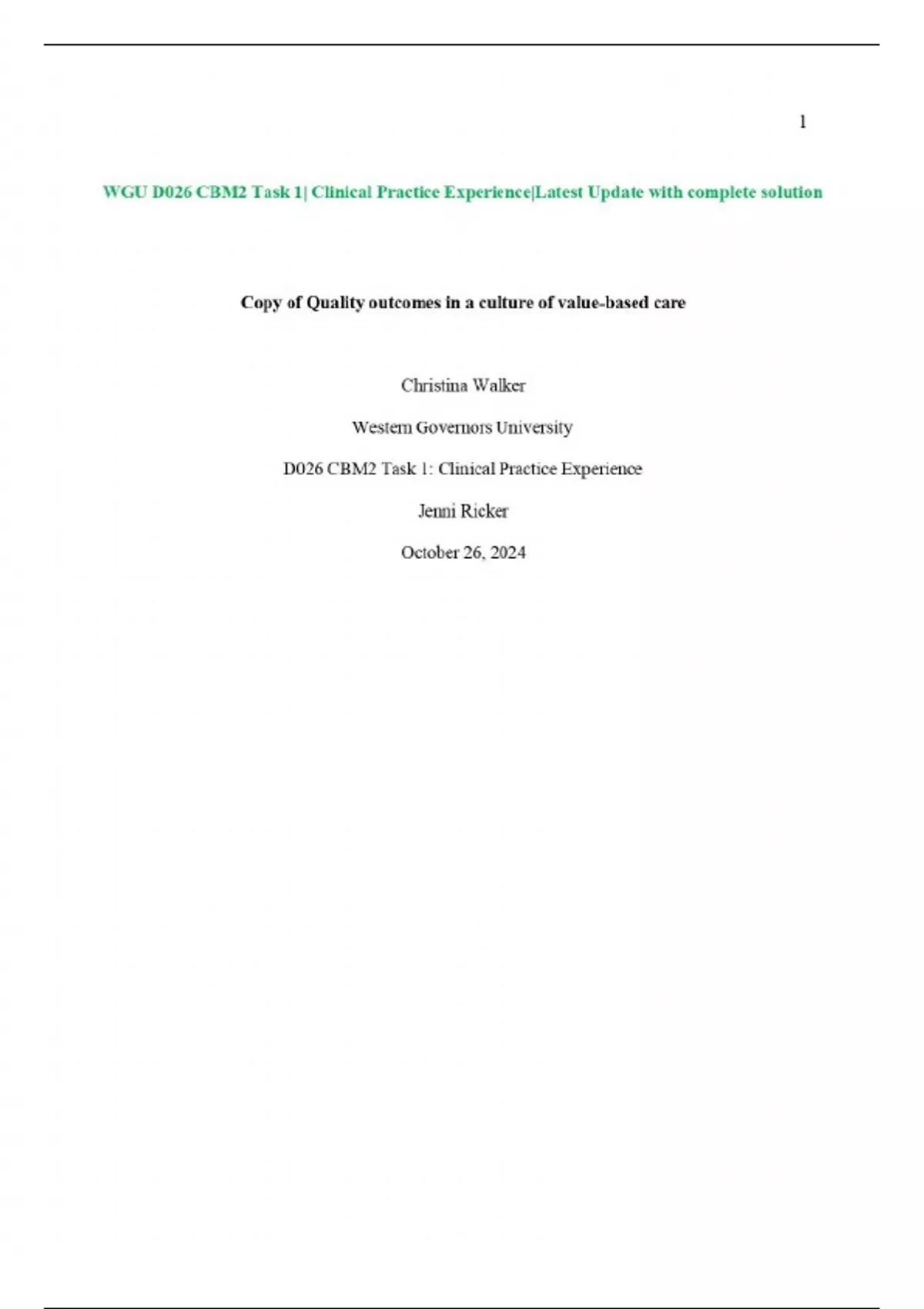 WGU D026 CBM2 Task 1| Clinical Practice Experience|Latest Update with complete solution