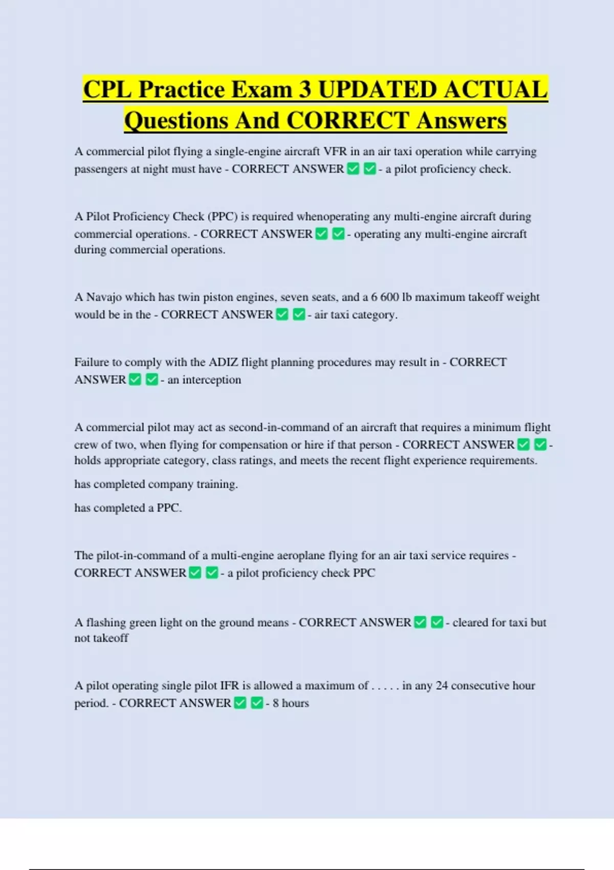 CORRECT ANSWER - a pilot proficiency check PPC