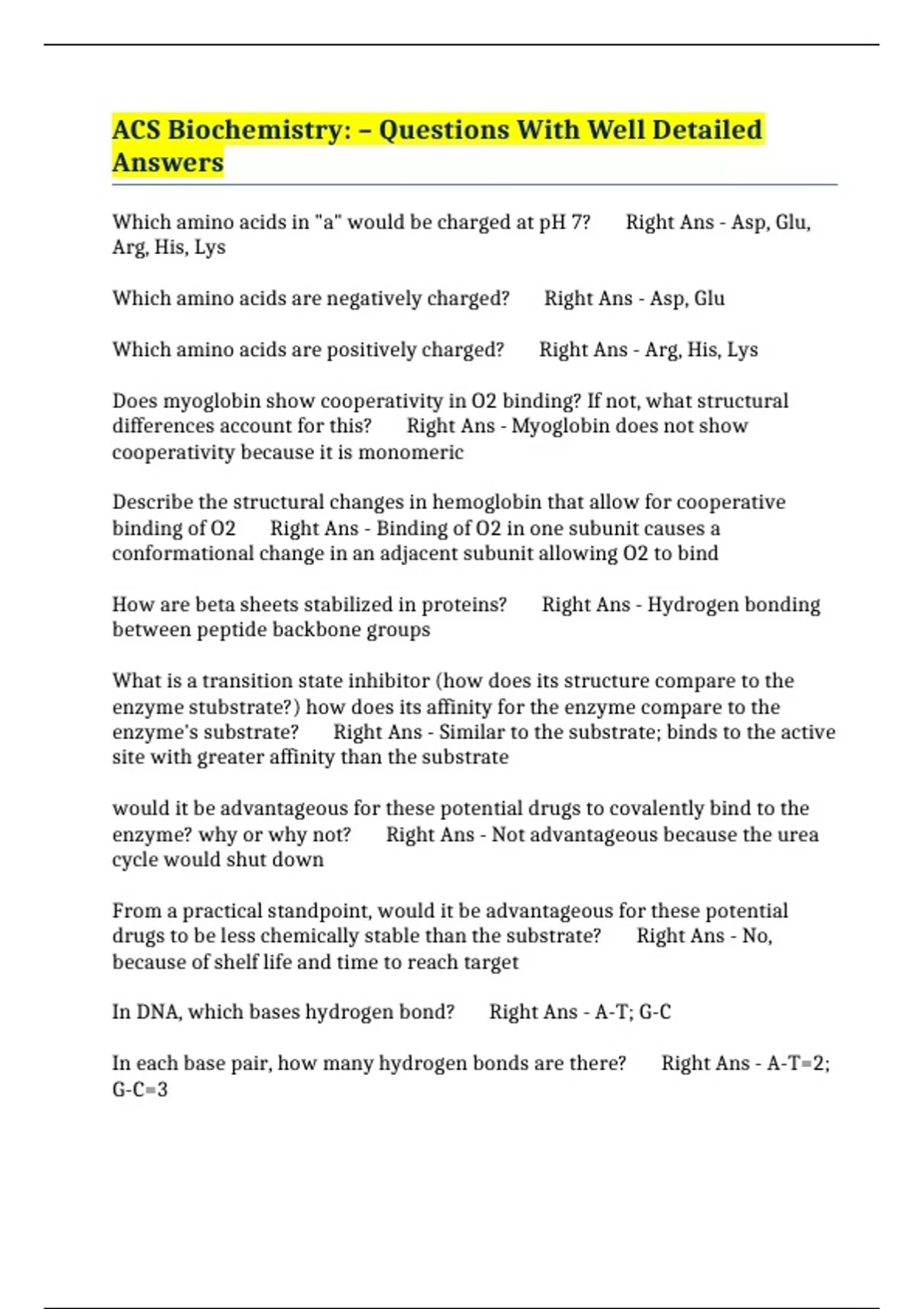 Which amino acids are positively charged? Right Ans - Arg, His, Lys