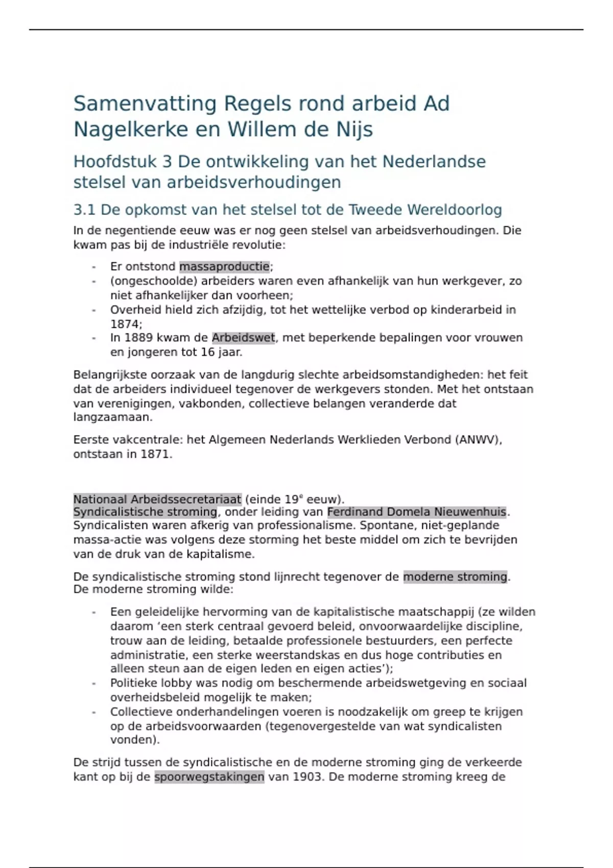 In de negentiende eeuw was er nog geen stelsel van arbeidsverhoudingen. Die