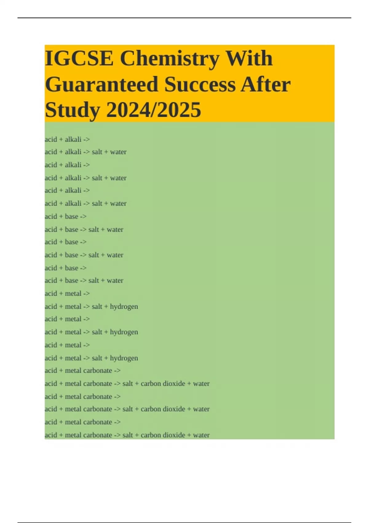 acid + metal -> salt + hydrogen