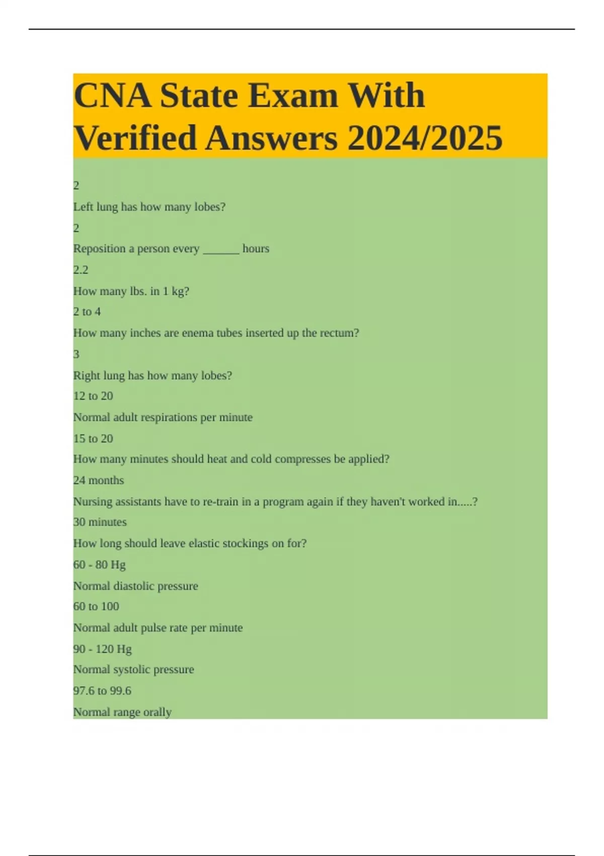 CNA State Exam With