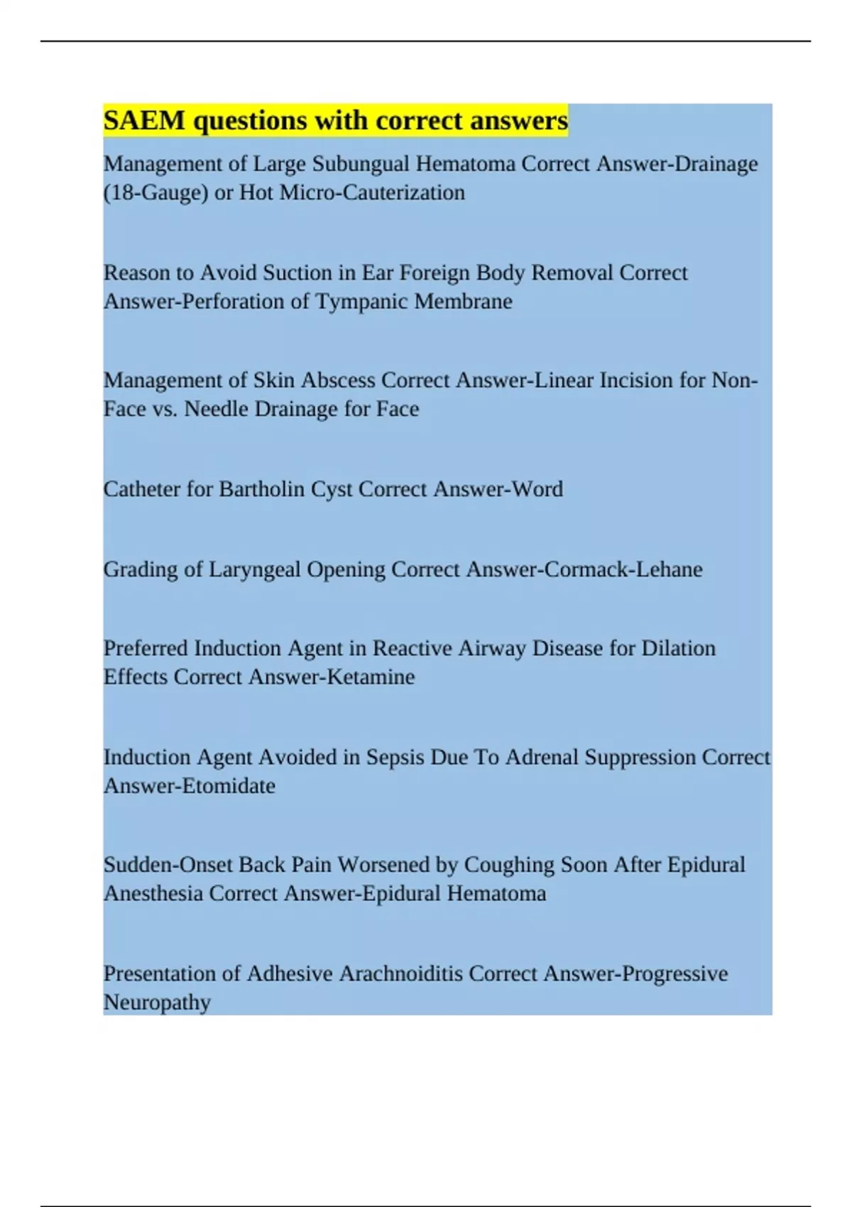 SAEM questions with correct answers.