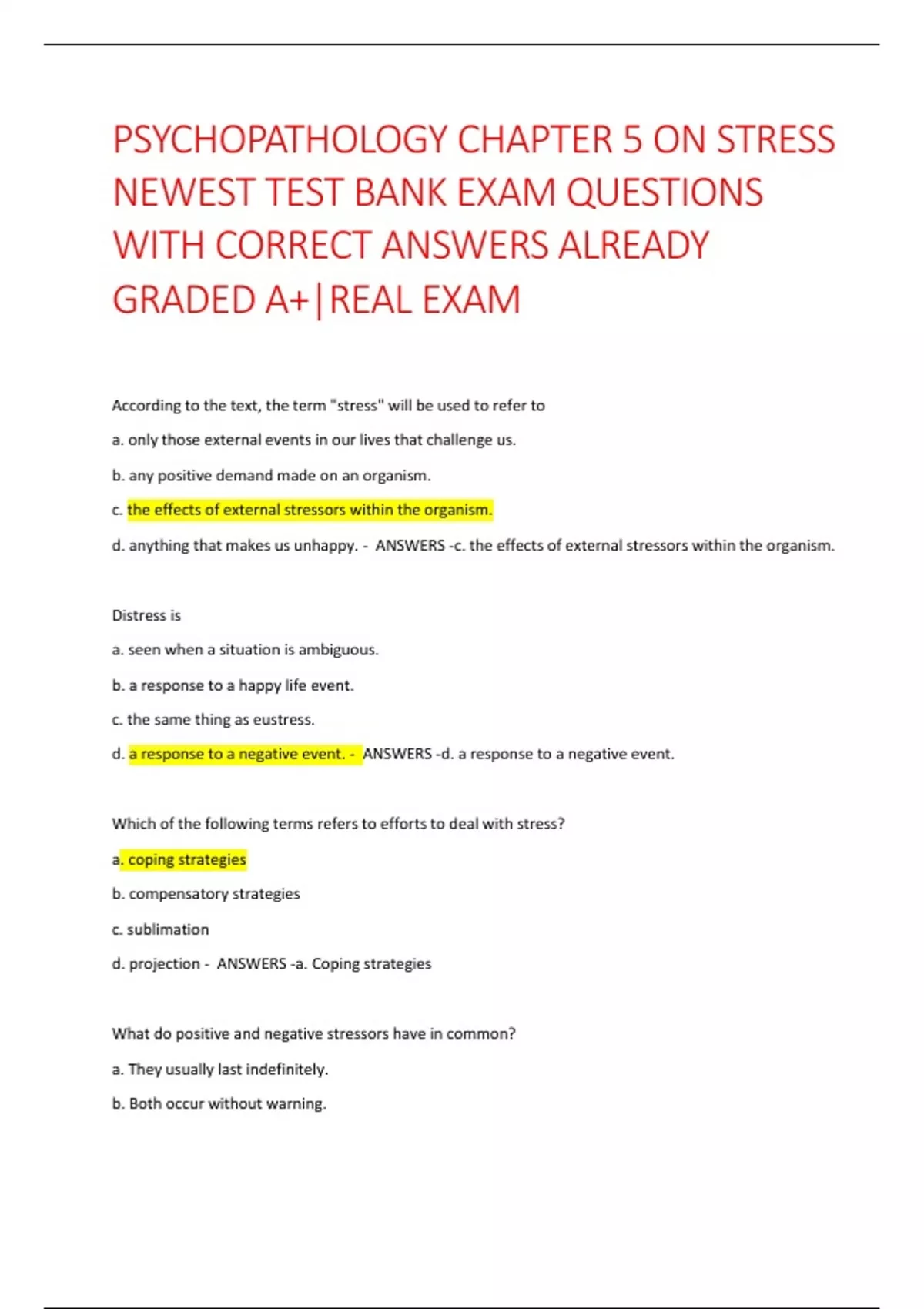 d. anything that makes us unhappy. - ANSWERS -c. the effects of external stressors within the organism.