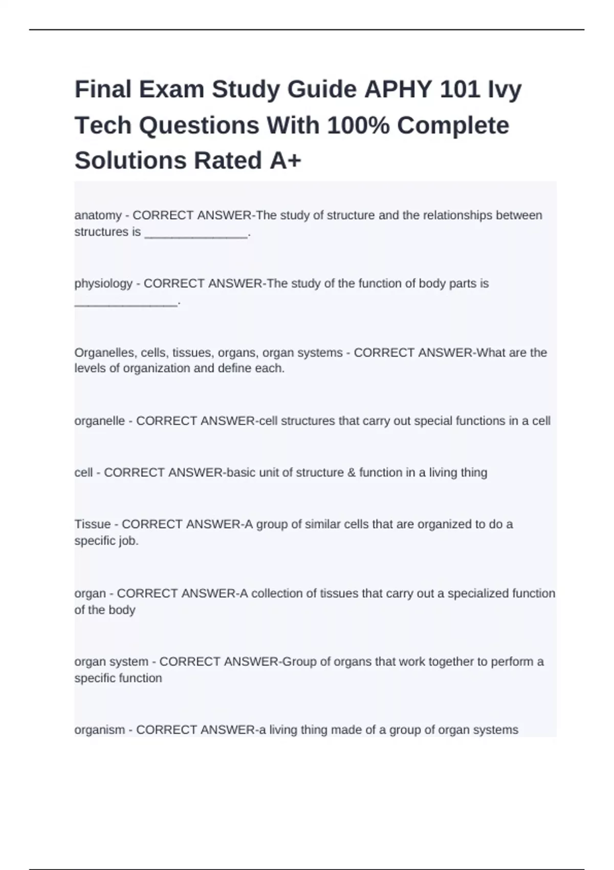 Organelles, cells, tissues, organs, organ systems - CORRECT ANSWER-What are the