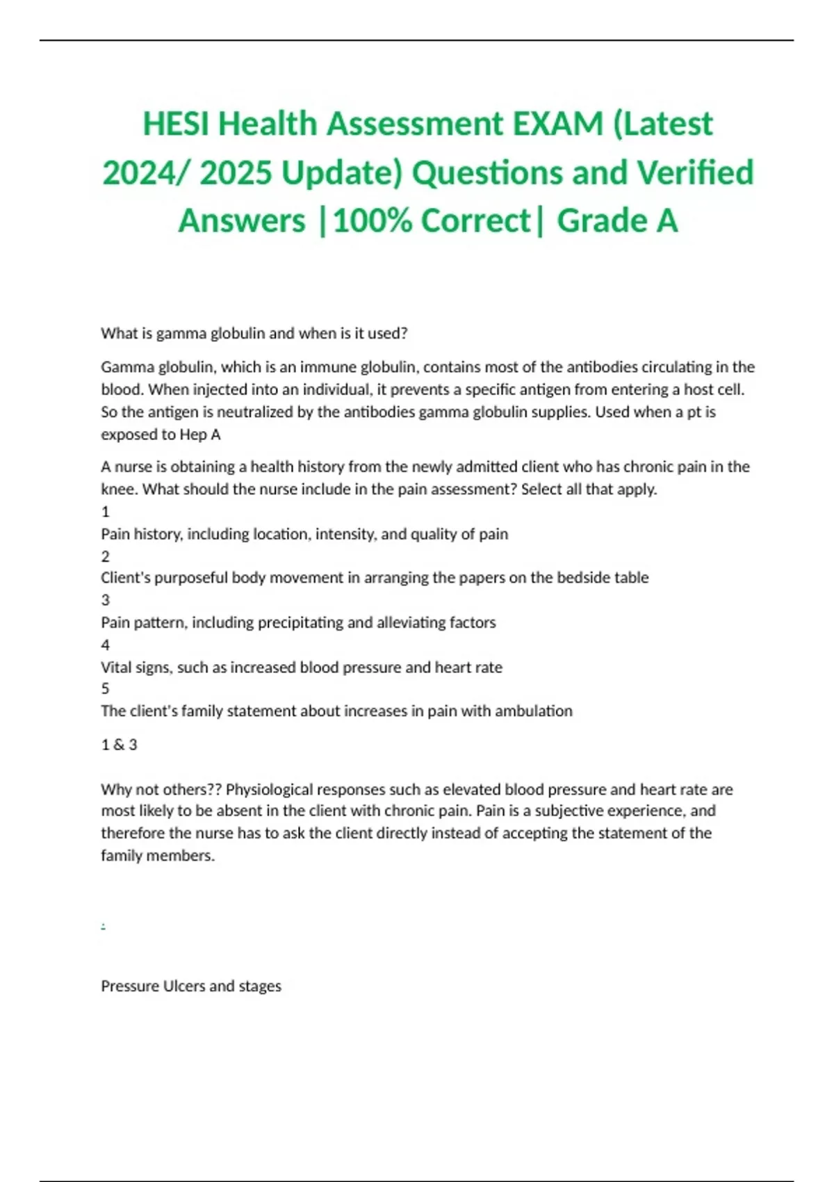 HESI Health Assessment EXAM (Latest