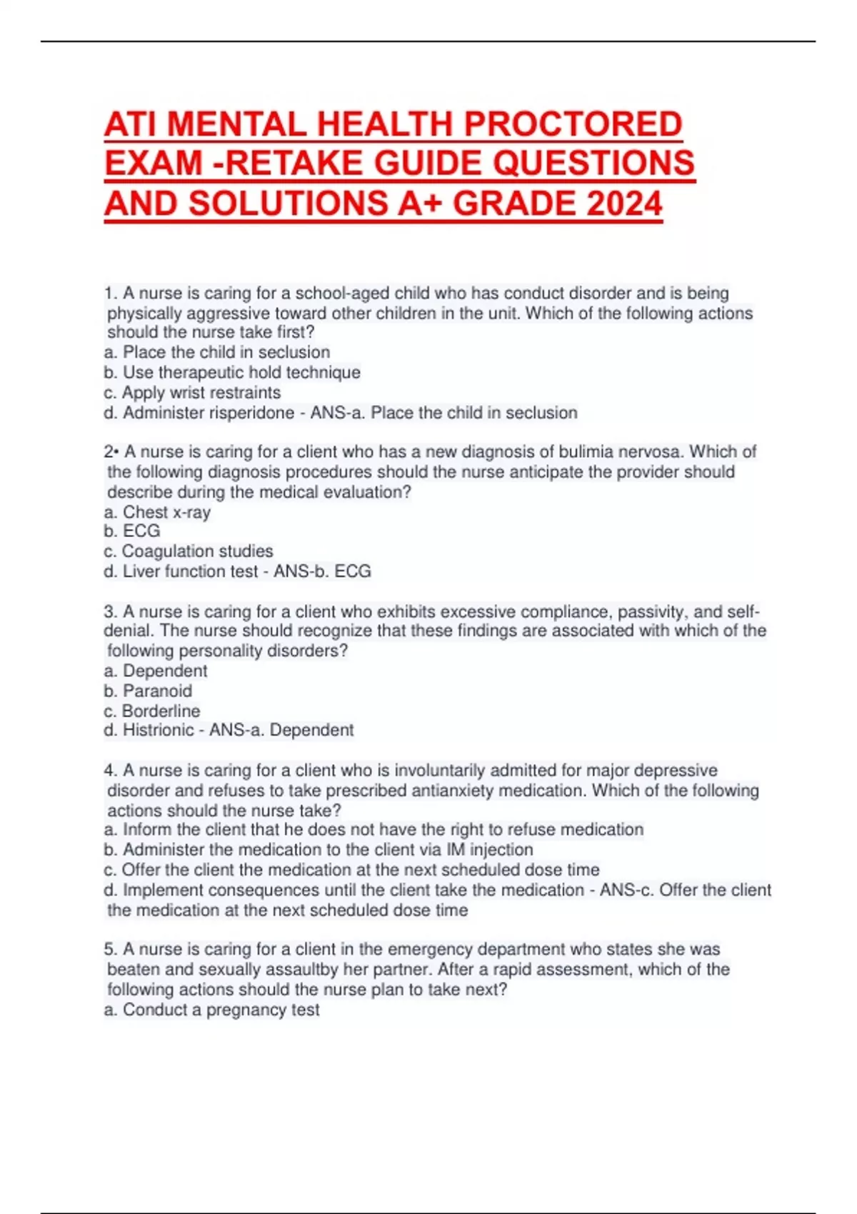 1. A nurse is caring for a school-aged child who has conduct disorder and is being