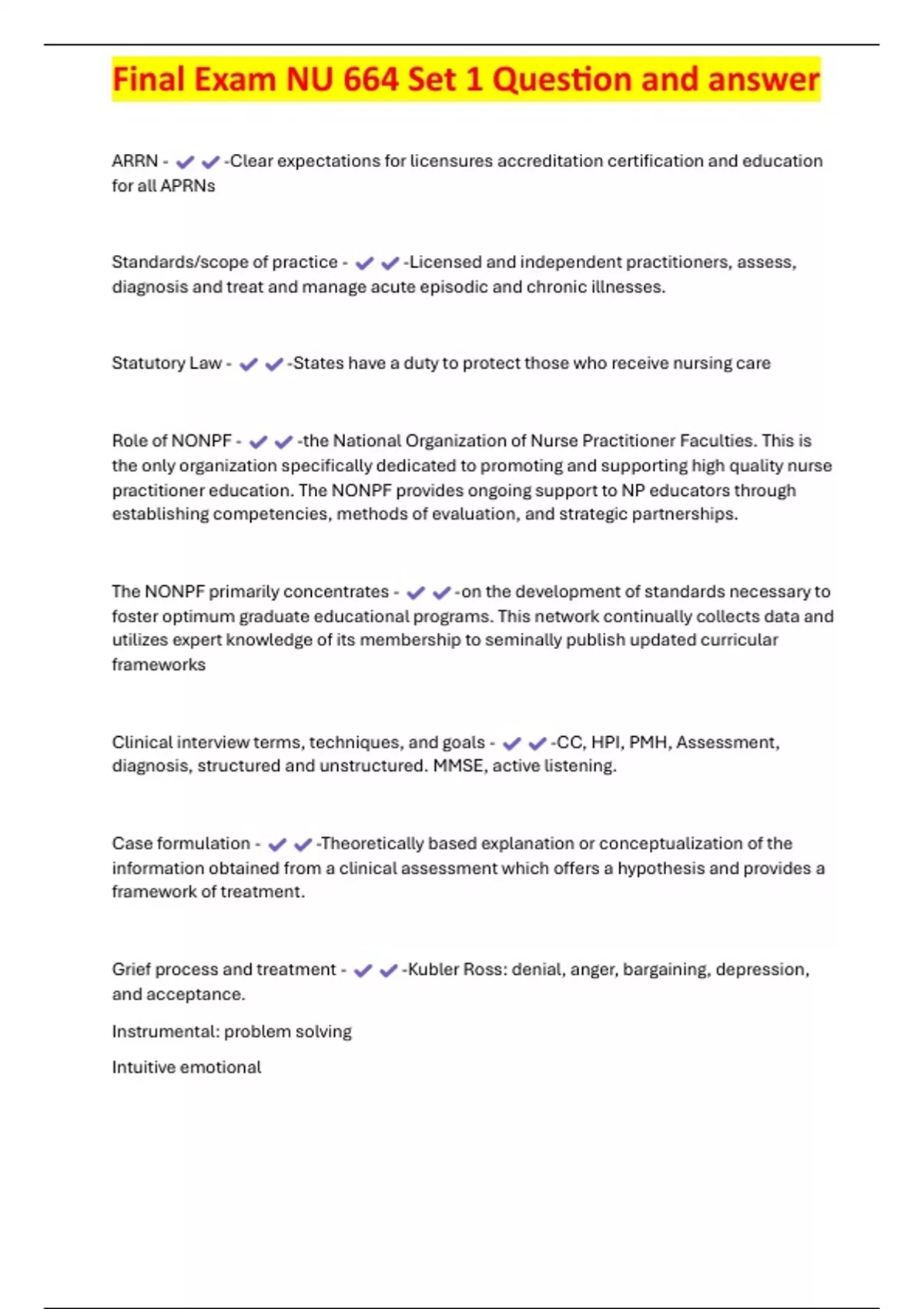 , Final Exam NU 664 Set 1 Question and answer