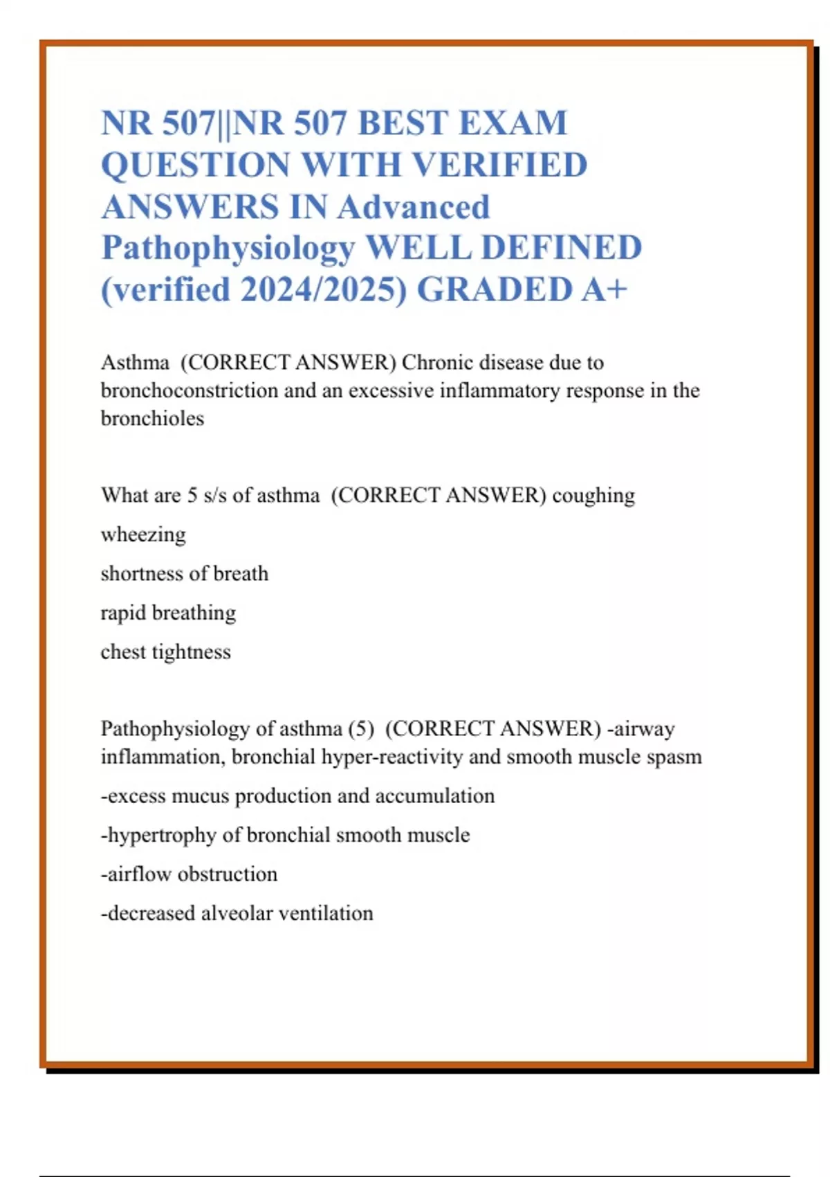 NR 507||QUESTION WITH VERIFIED ANSWERS IN Advanced Pathophysiology WELL DEFINED (verified 2024/2025) GRADED A+