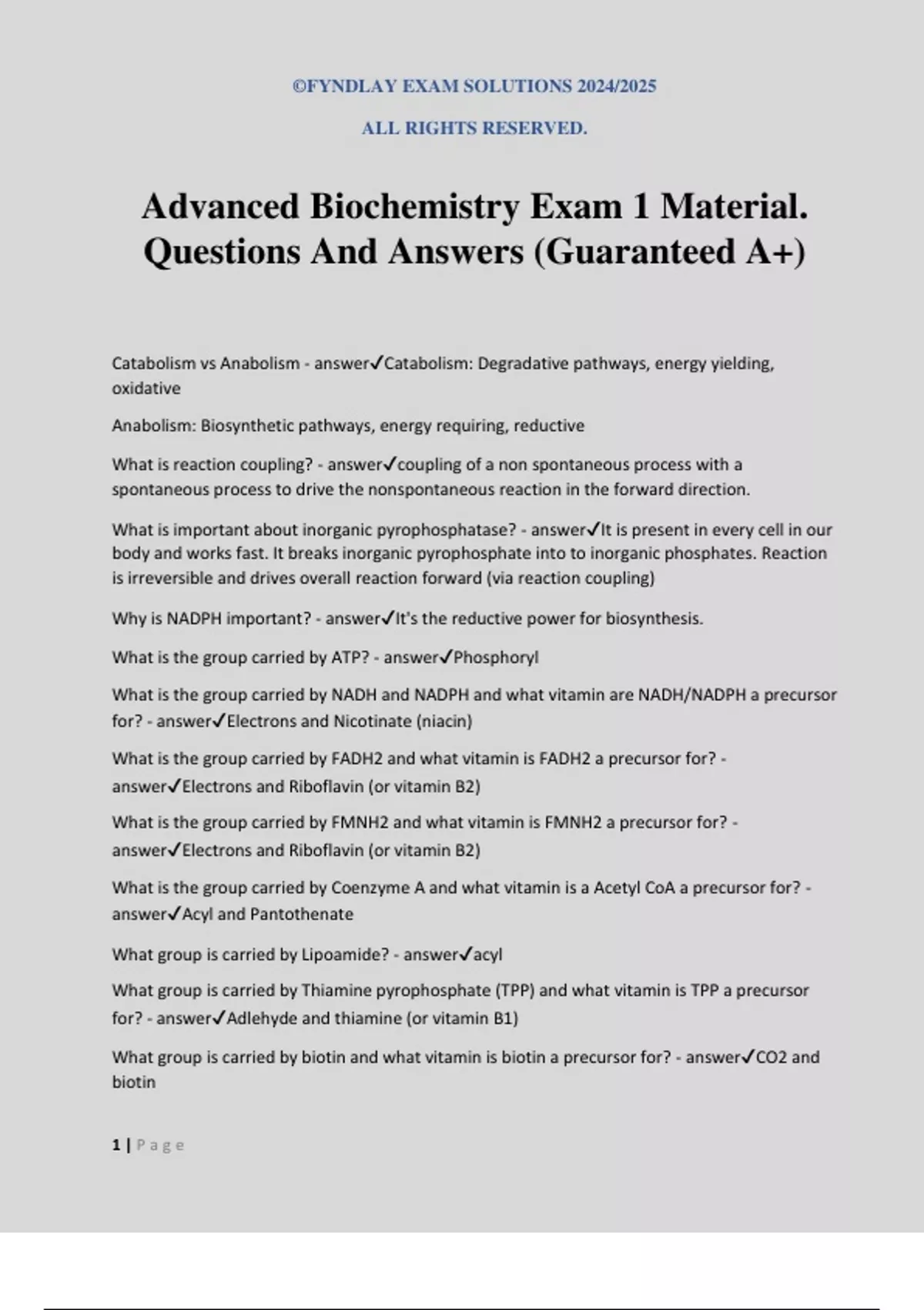 Advanced Biochemistry Exam 1 Material.
