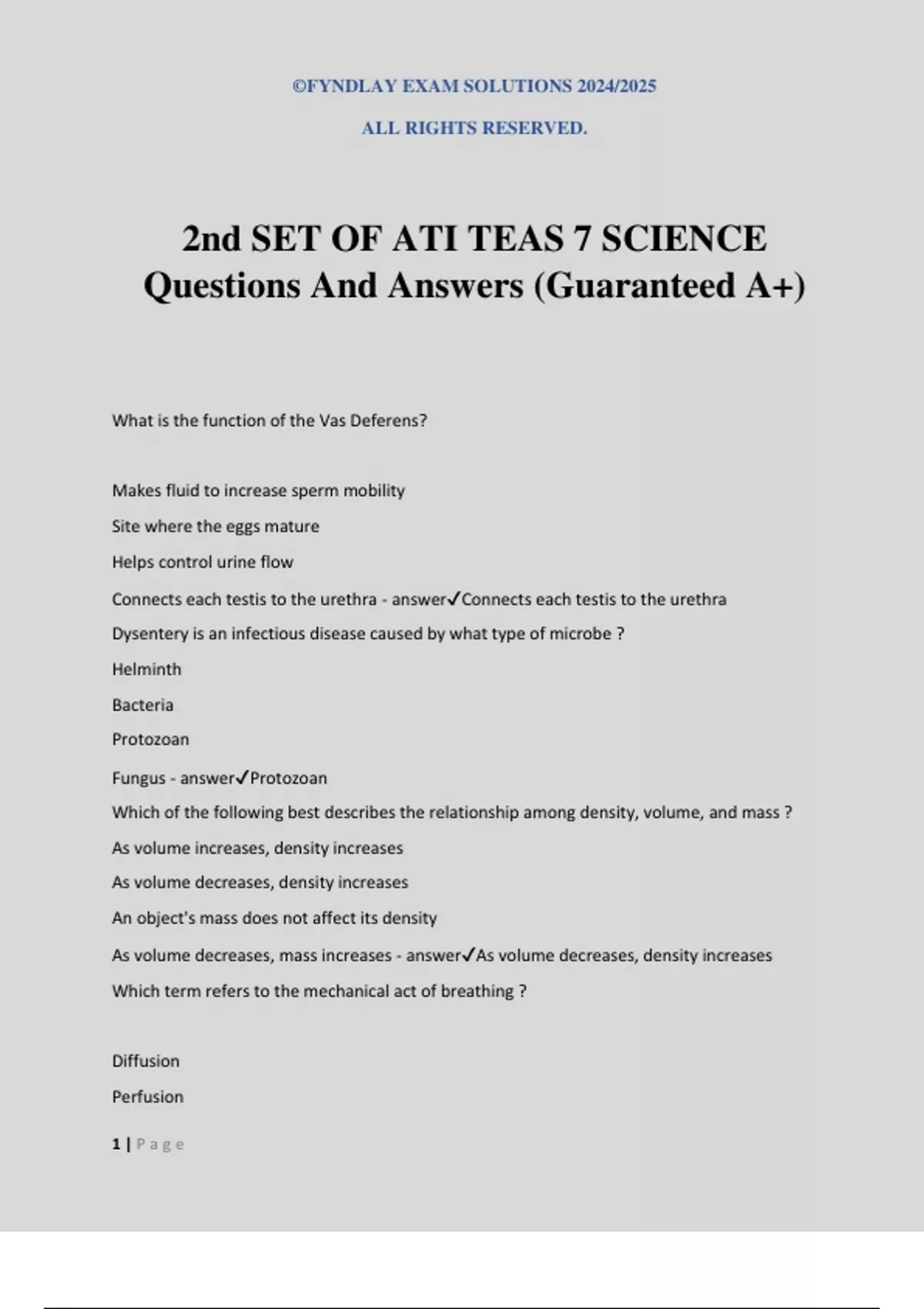 2nd SET OF ATI TEAS 7 SCIENCE