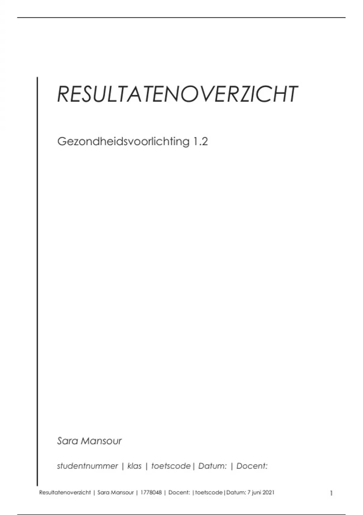 Resultatenoverzicht | Sara Mansour | 1778048 | Docent: |toetscode|Datum: 7 juni 2021 2