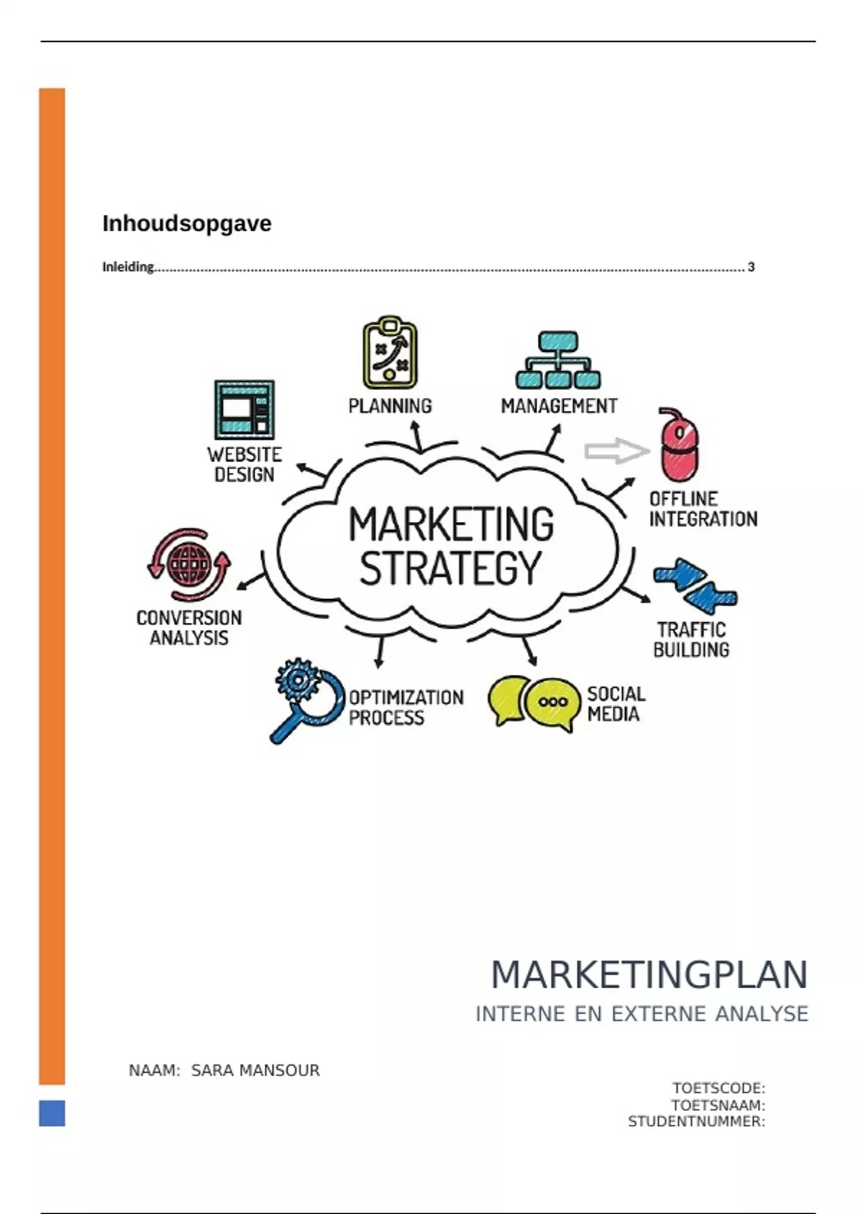 marketingplan wordt opgesteld op basis van de interne analyse, externe analyse,