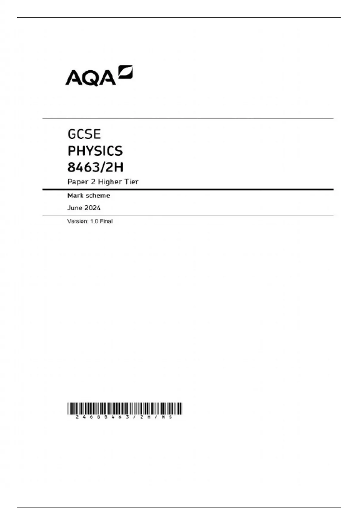 GCSE AQA JUNE 2024 HIGHER TRIPLE SCIENCE PHYSICS PAPER 2 MARK SCHEME (84632H)