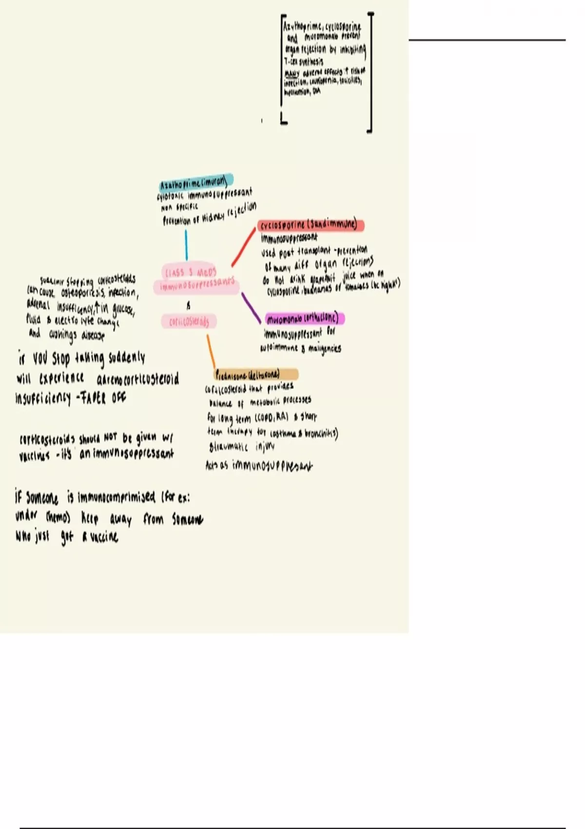 information about azathioprine, cyclosporine, muromonab, and prednisone.