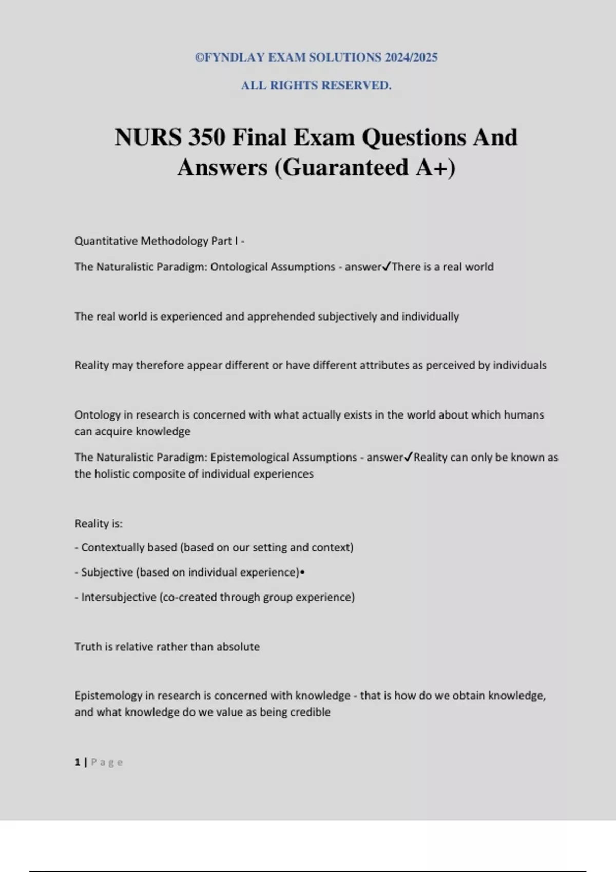 The Naturalistic Paradigm: Ontological Assumptions - answer✔There is a real world