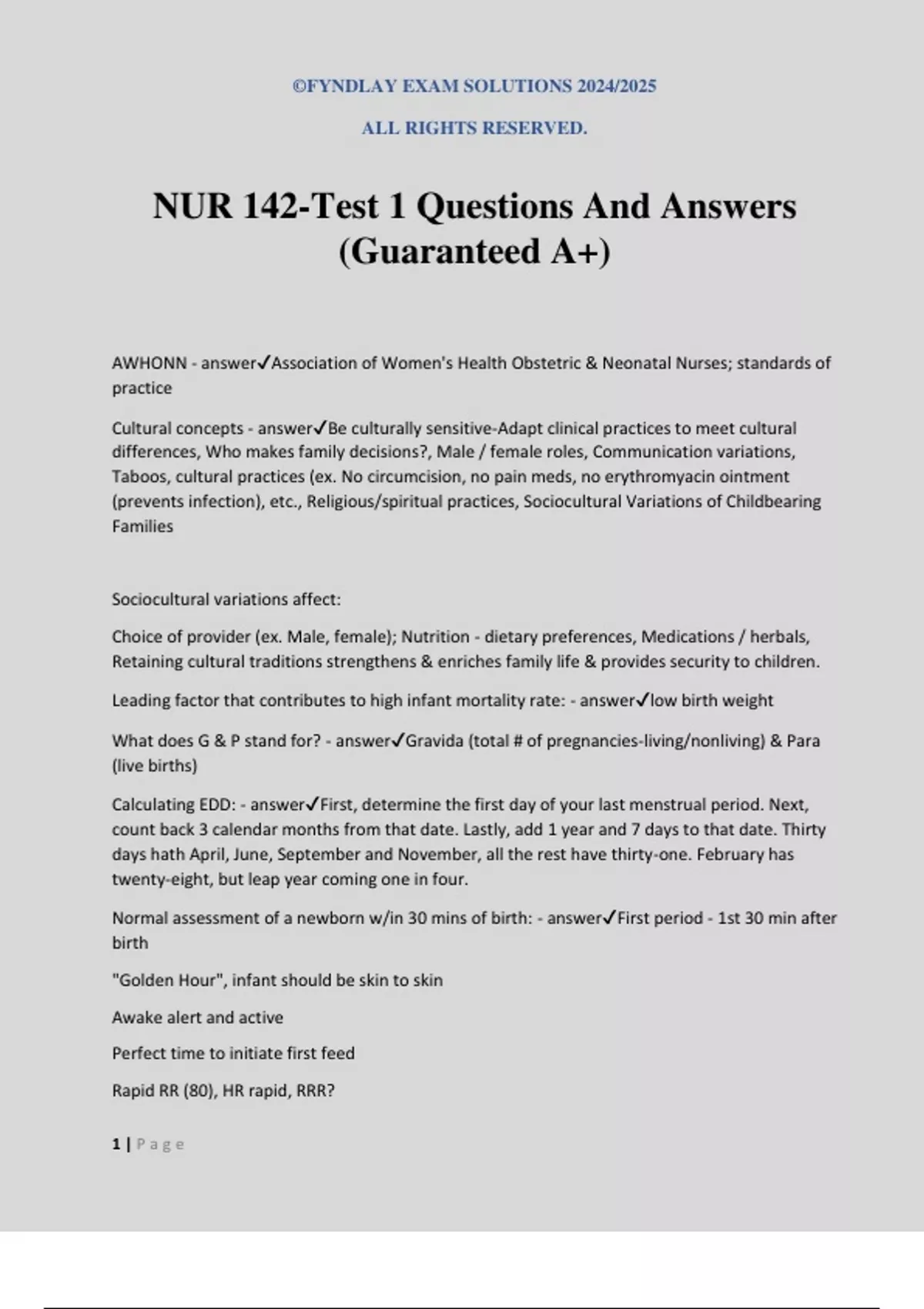 , ©FYNDLAY EXAM SOLUTIONS 2024/2025