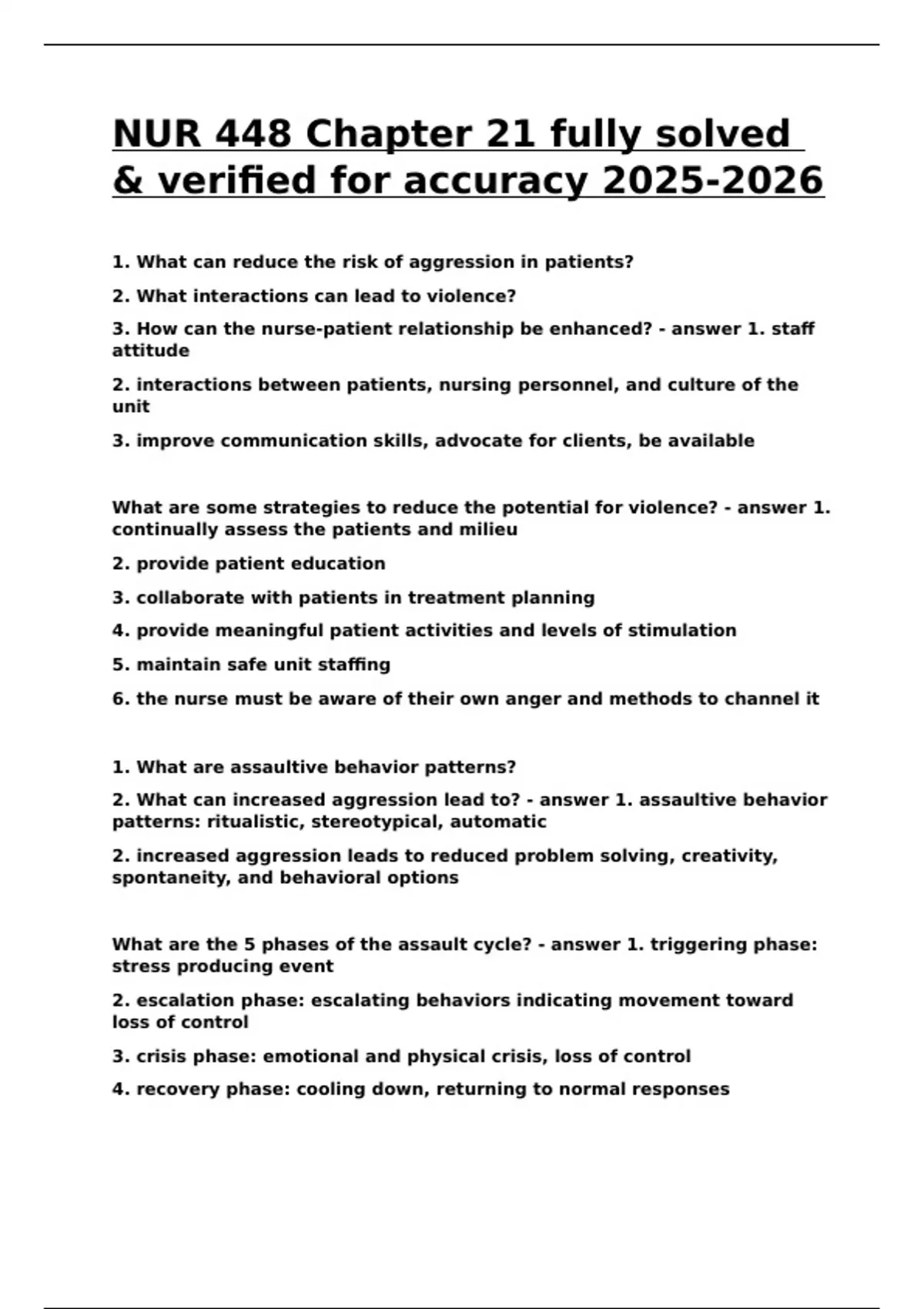 NUR 448 Chapter 21 fully solved & verified for accuracy