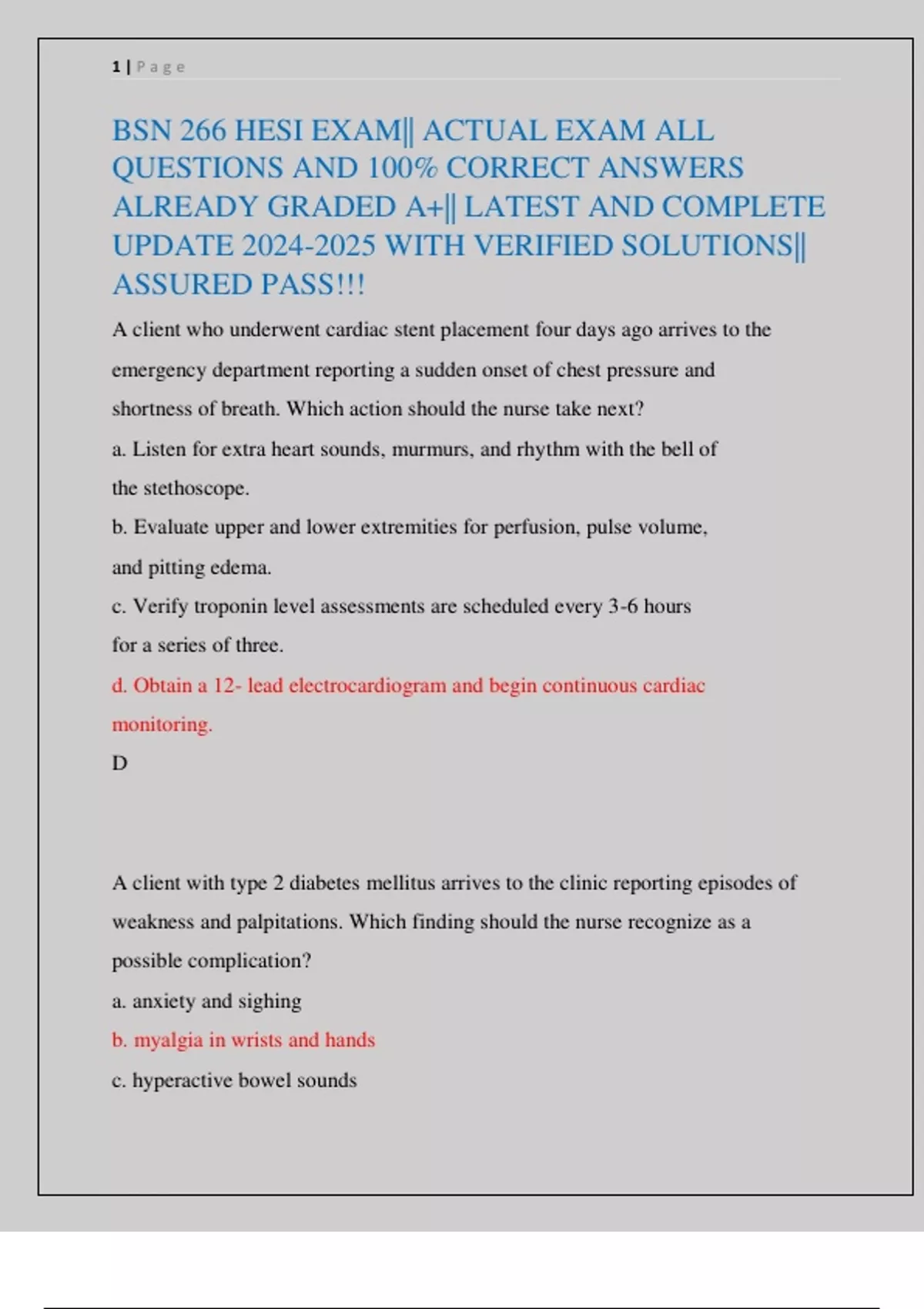 BSN 266 HESI EXAM|| ACTUAL EXAM ALL