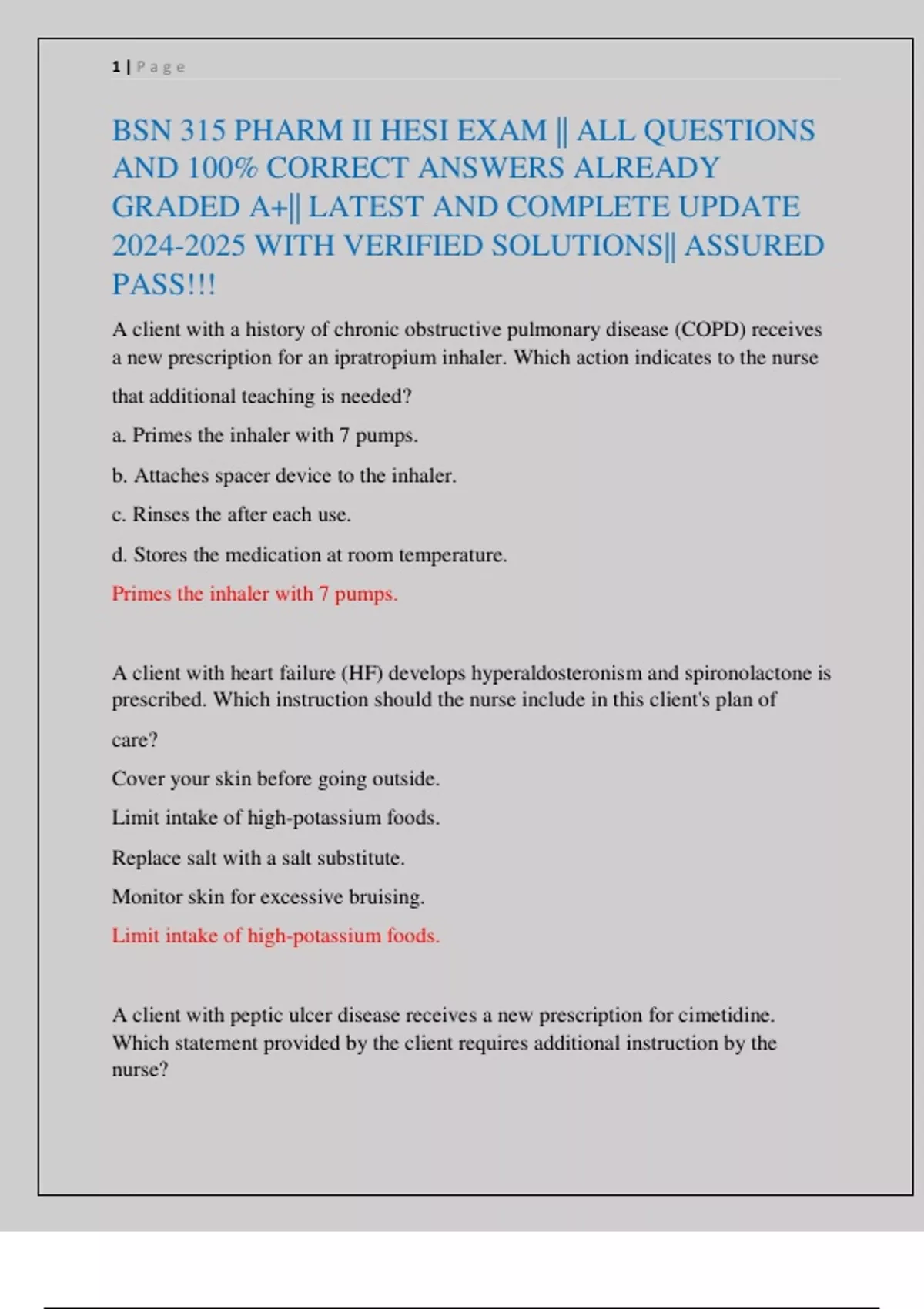 BSN 315 PHARM II HESI EXAM || ALL QUESTIONS