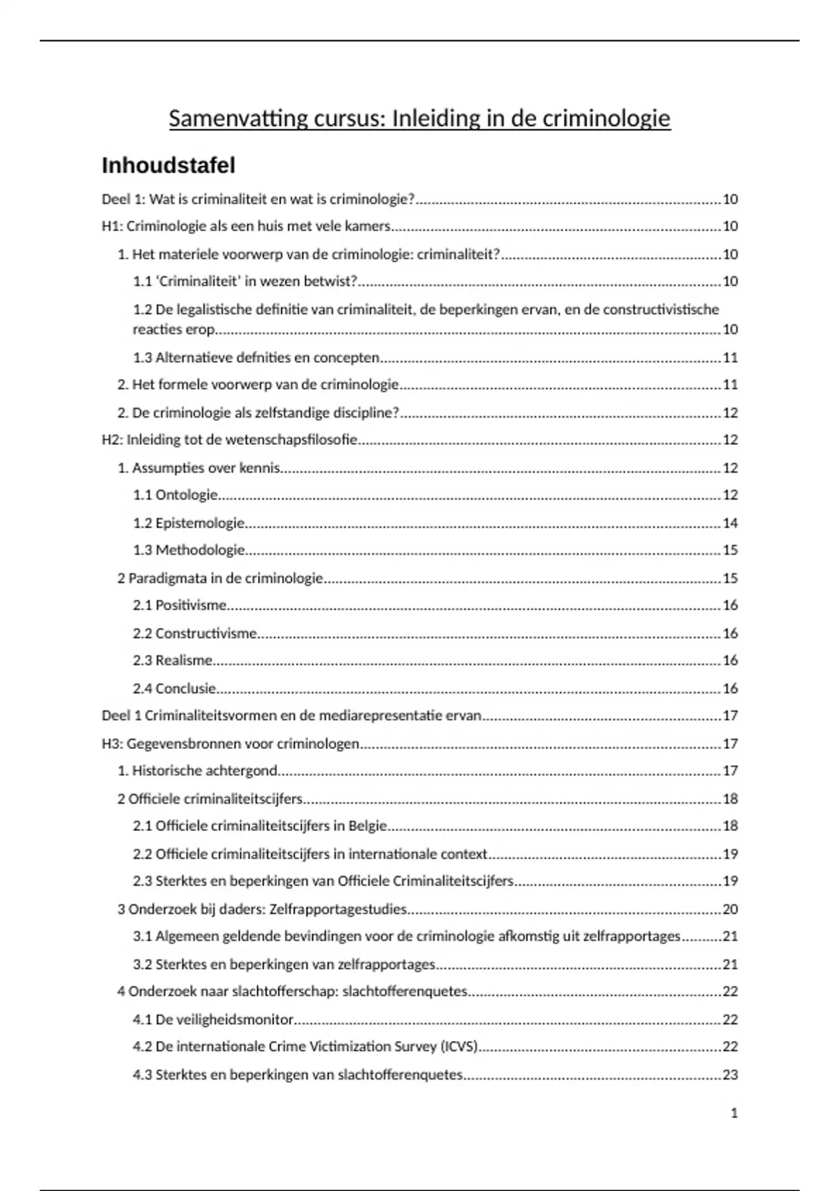 H1: Criminologie als een huis met vele kamers...................................................................................10