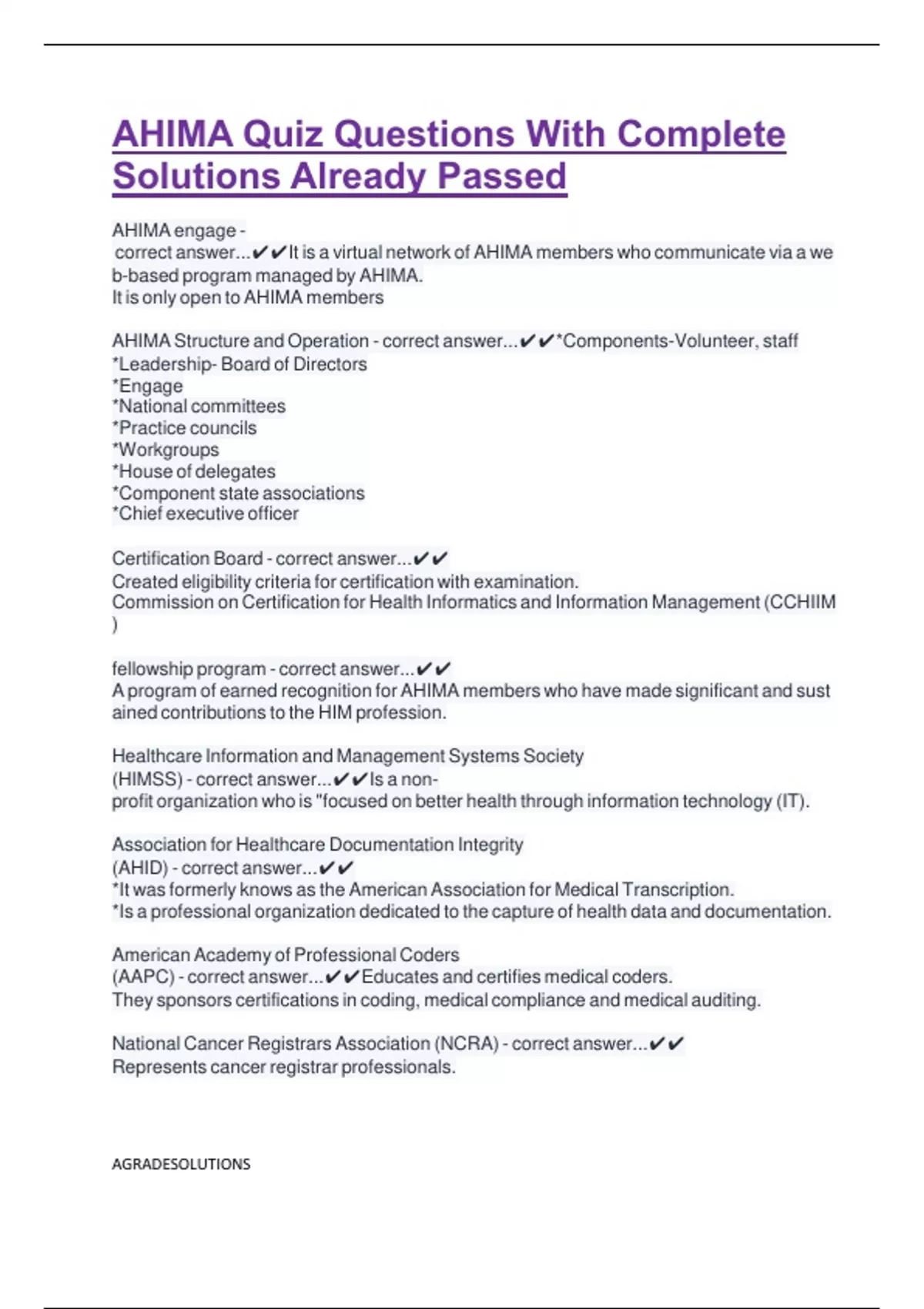 AHIMA Quiz Questions With Complete