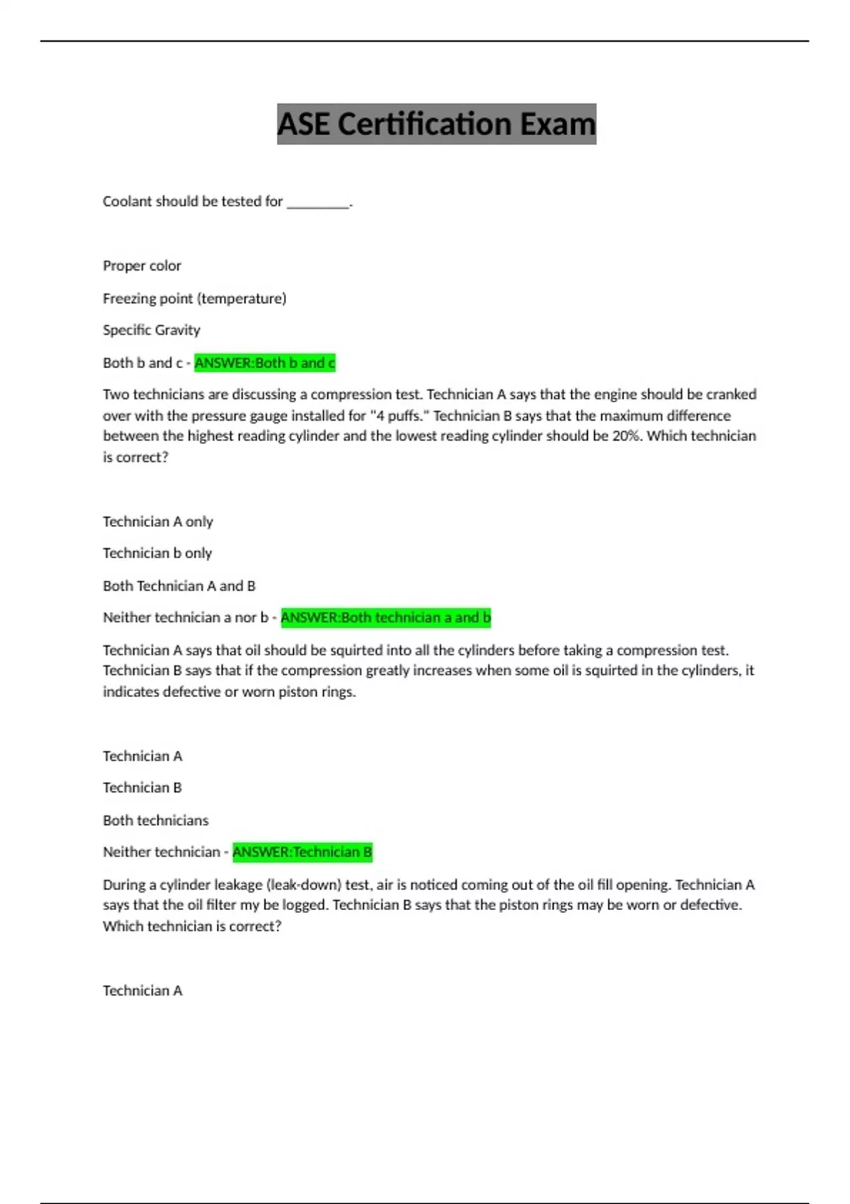Neither technician a nor b - ANSWER:Both technician a and b