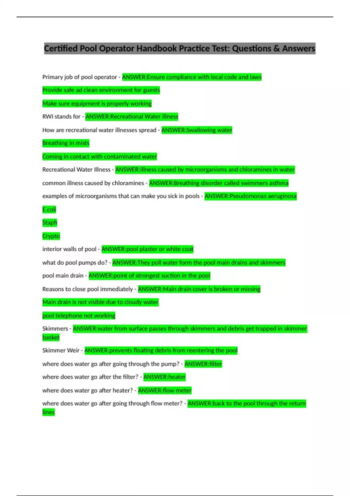 Primary job of pool operator - ANSWER:Ensure compliance with local code and laws
