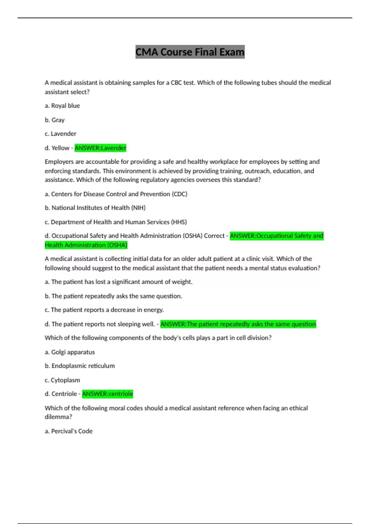 d. Occupational Safety and Health Administration (OSHA) Correct - ANSWER:Occupational Safety and