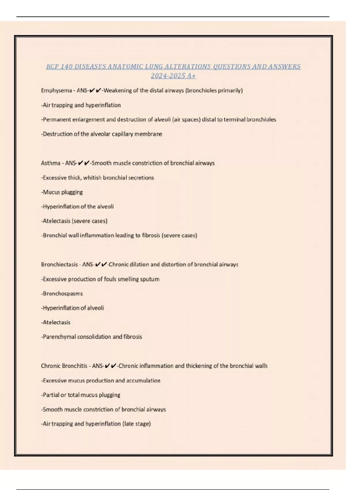 RCP 140 DISEASES ANATOMIC LUNG ALTERATIONS QUESTIONS AND ANSWERS A+