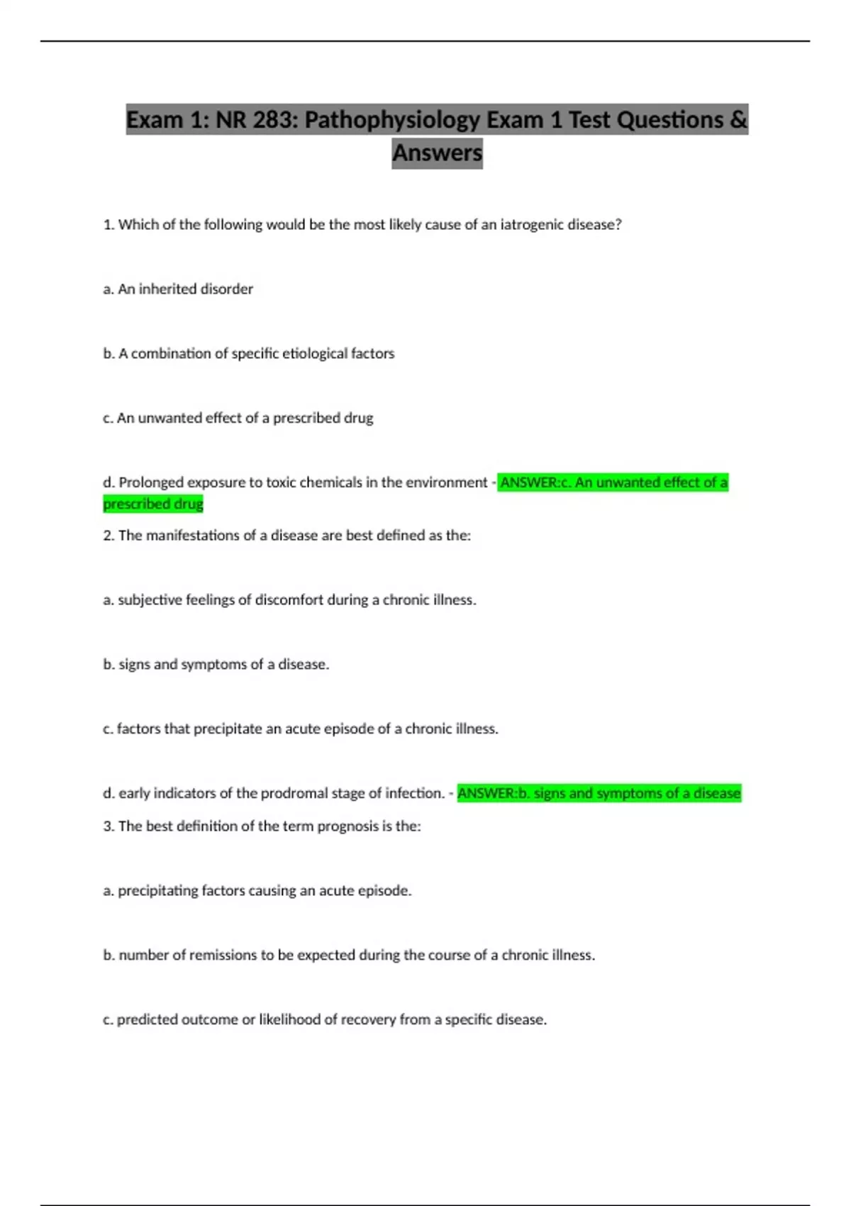 ,d. exacerbations occurring during chronic illness. - ANSWER:c. predicted outcome or likelihood of