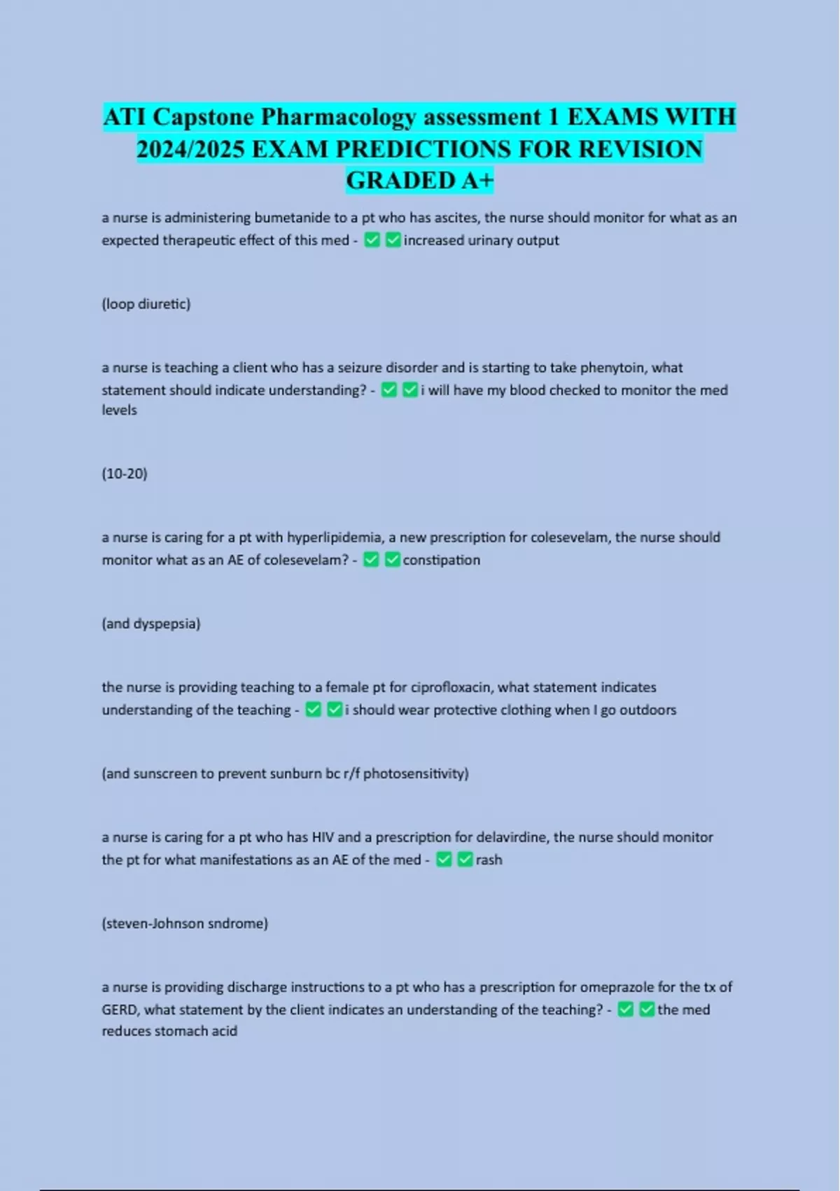ATI Capstone Pharmacology assessment 1 EXAMS WITH